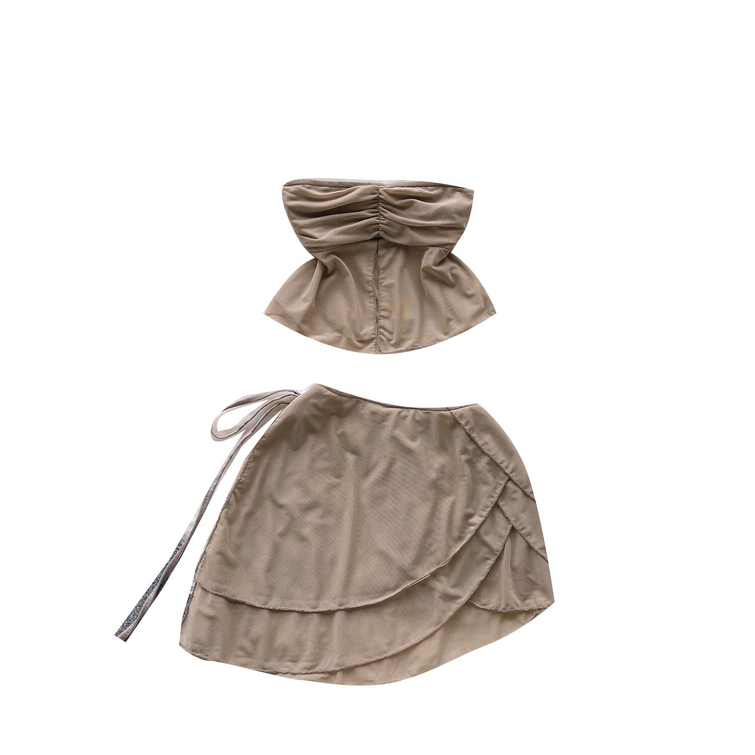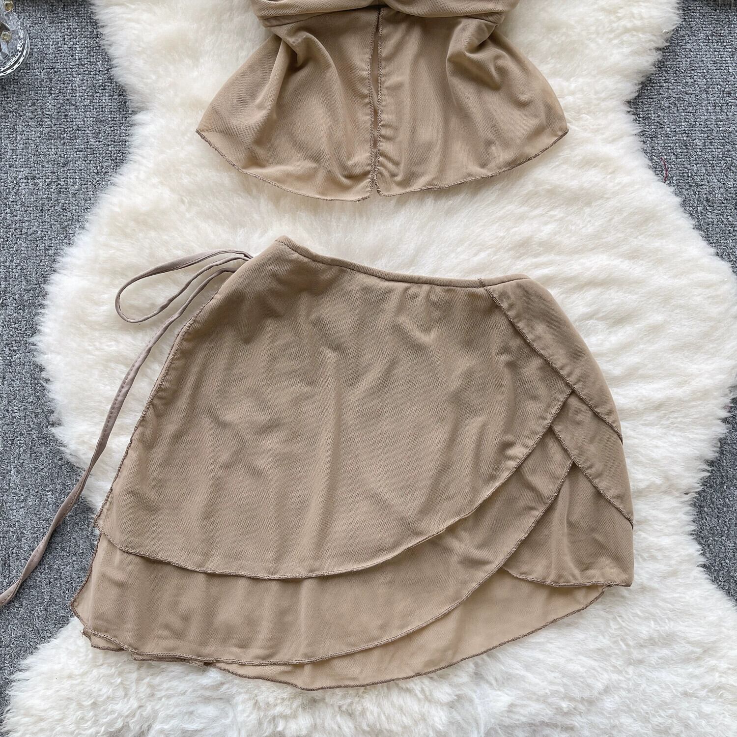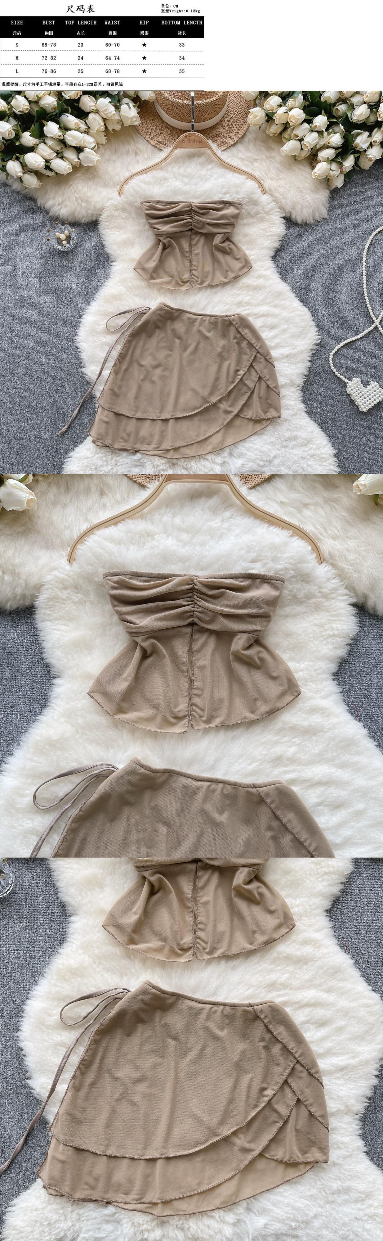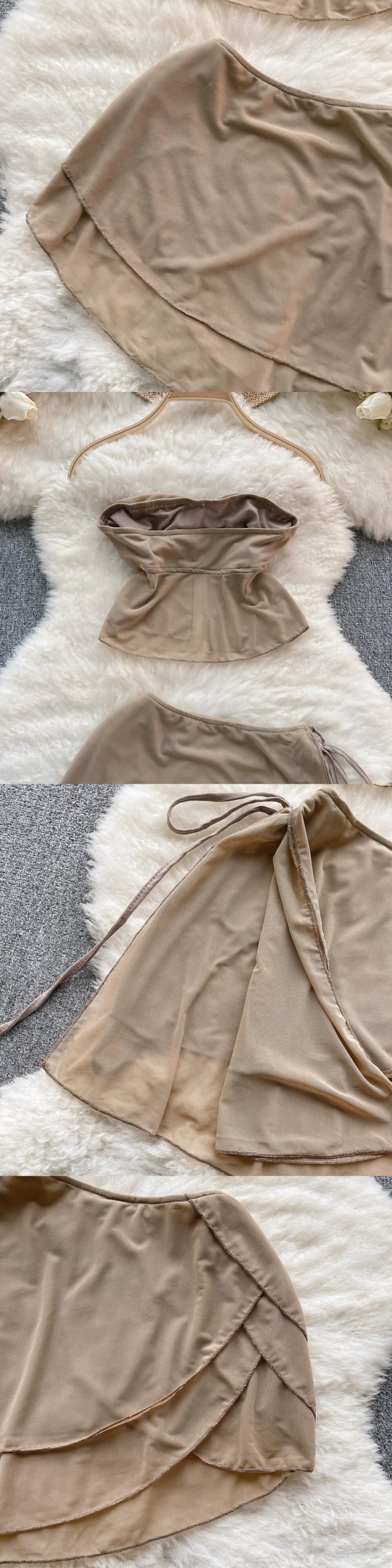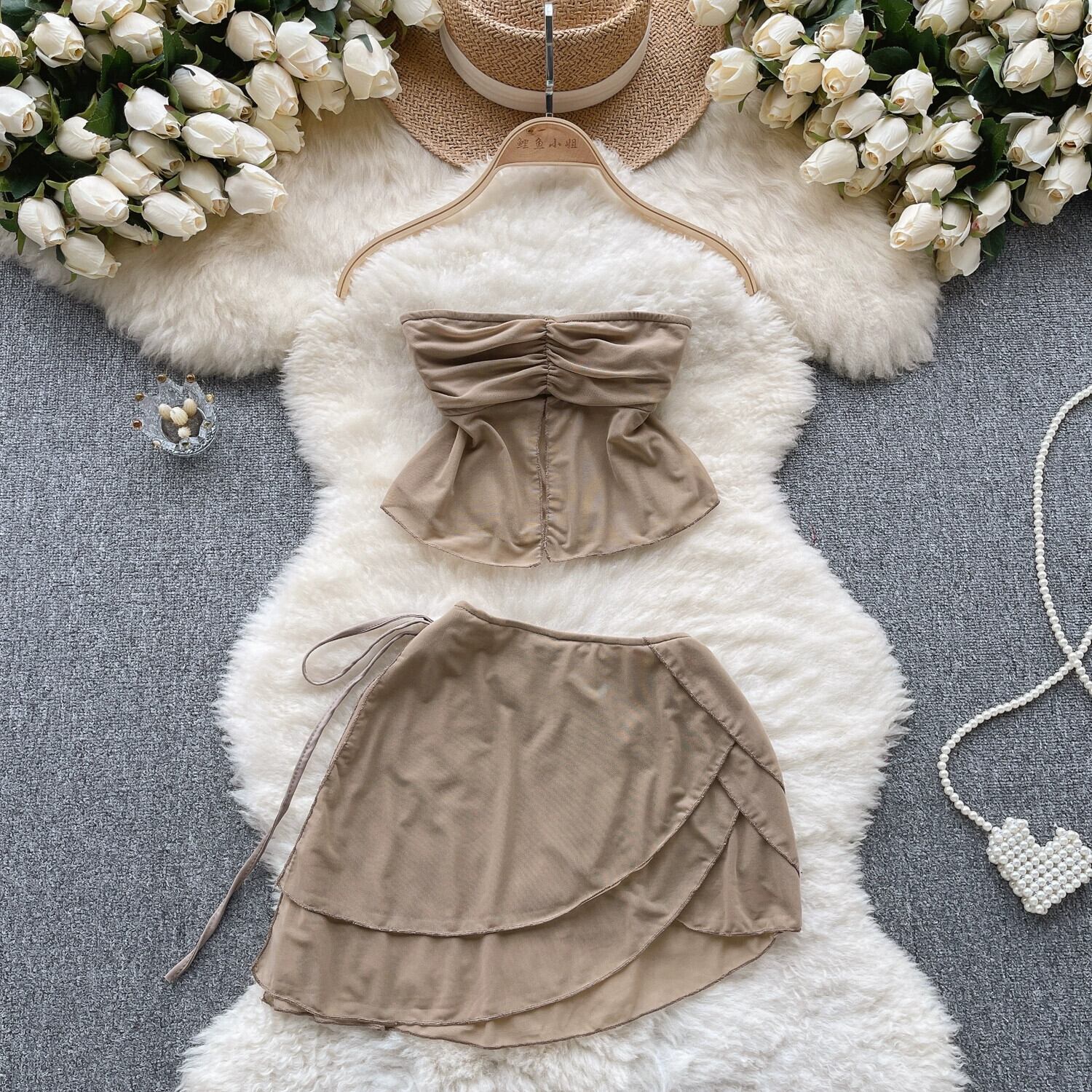 フランスの高級チューブトップ女性 + ハイウエスト不規則なヒップカバーショートスカート 2 点セット、サマースーツ 夏物 lyxaj79331562200