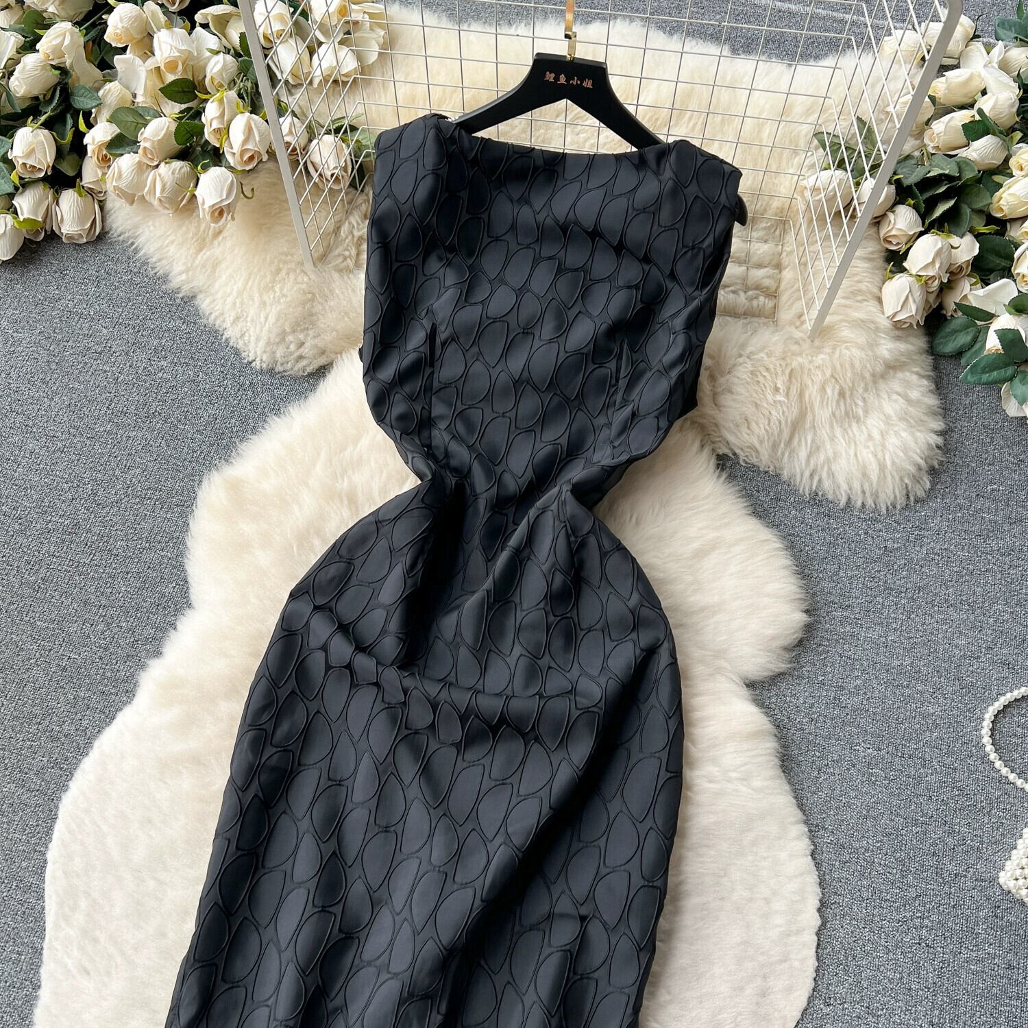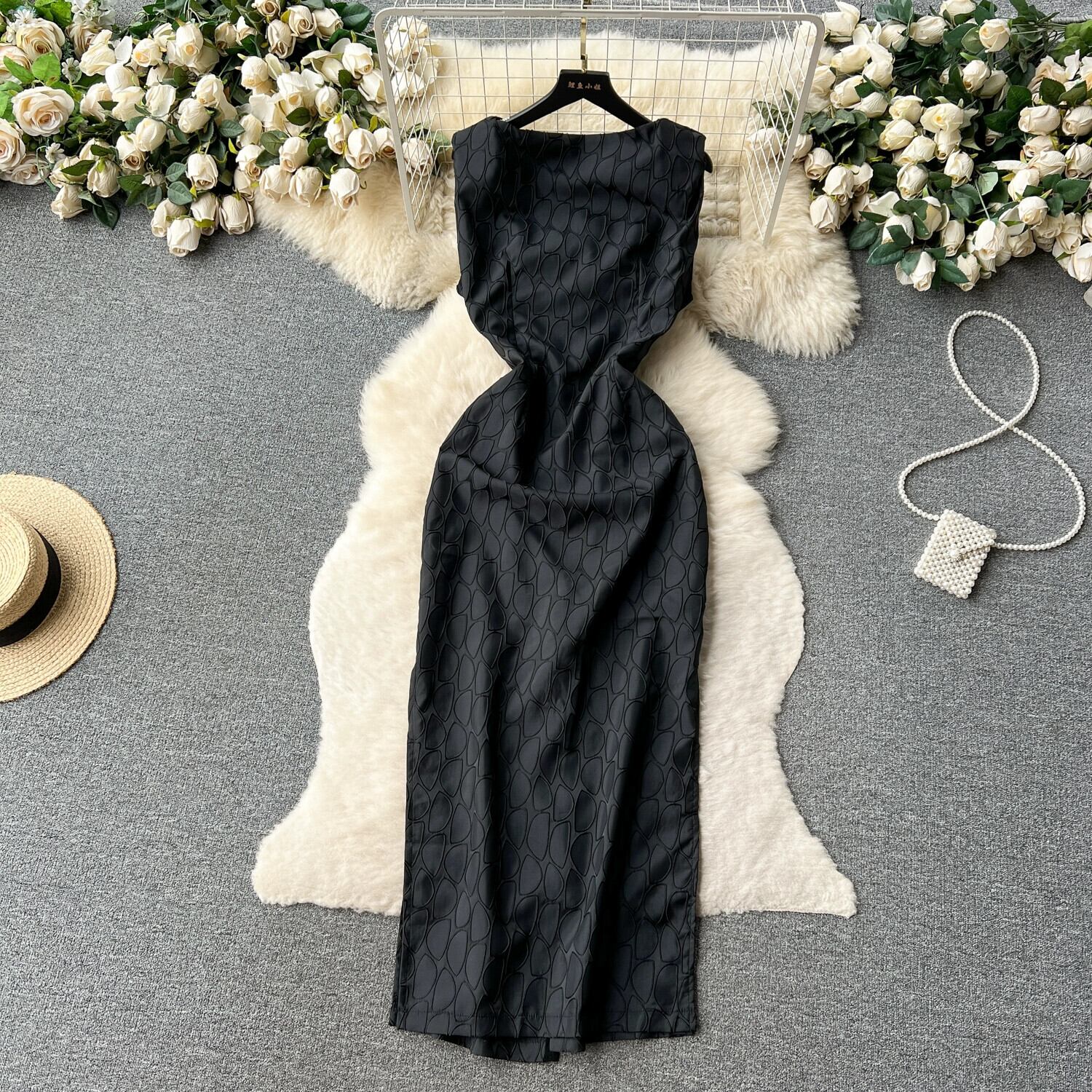 気質ハイエンドジャカード年齢を軽減する黒のドレスの女性の夏の新しいハイウエストスリット痩身ウエストバッグヒップスカートトレンディな ブラック サマー 夏物 lyxaj56821293145