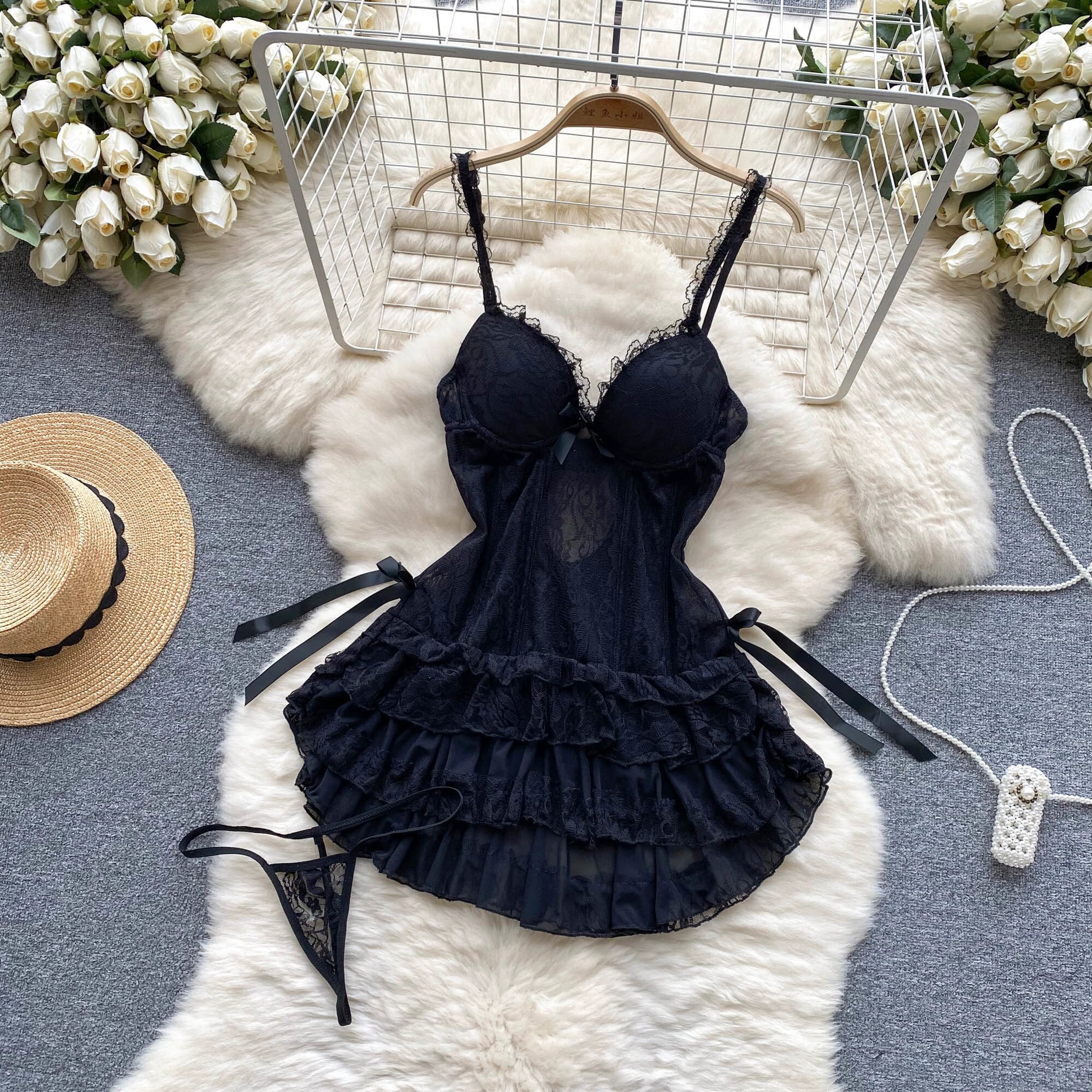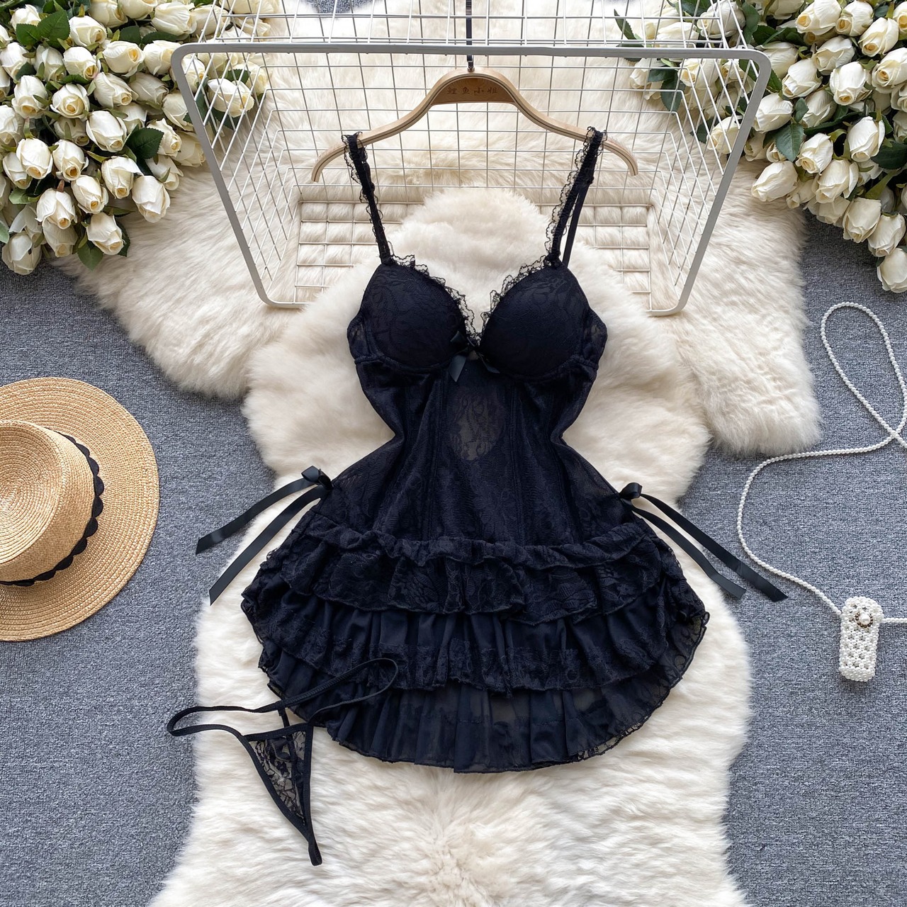 甘辛セクシーローカットシースルーレースミニスカートレディース夏着痩せふわふわプリンセスドレス 大人ガーリー スウィート キュート カジュアル サマー 夏物 lyxaj76949334966
