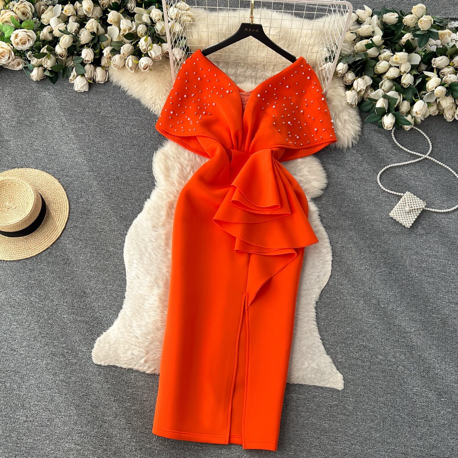 夏のフランスの高級ドレスの女性、ビーズのプリーツスリットデザイン、ストリートにヒットするユニークでレディライクなスカート サマー 夏物 lyxaj49530609792