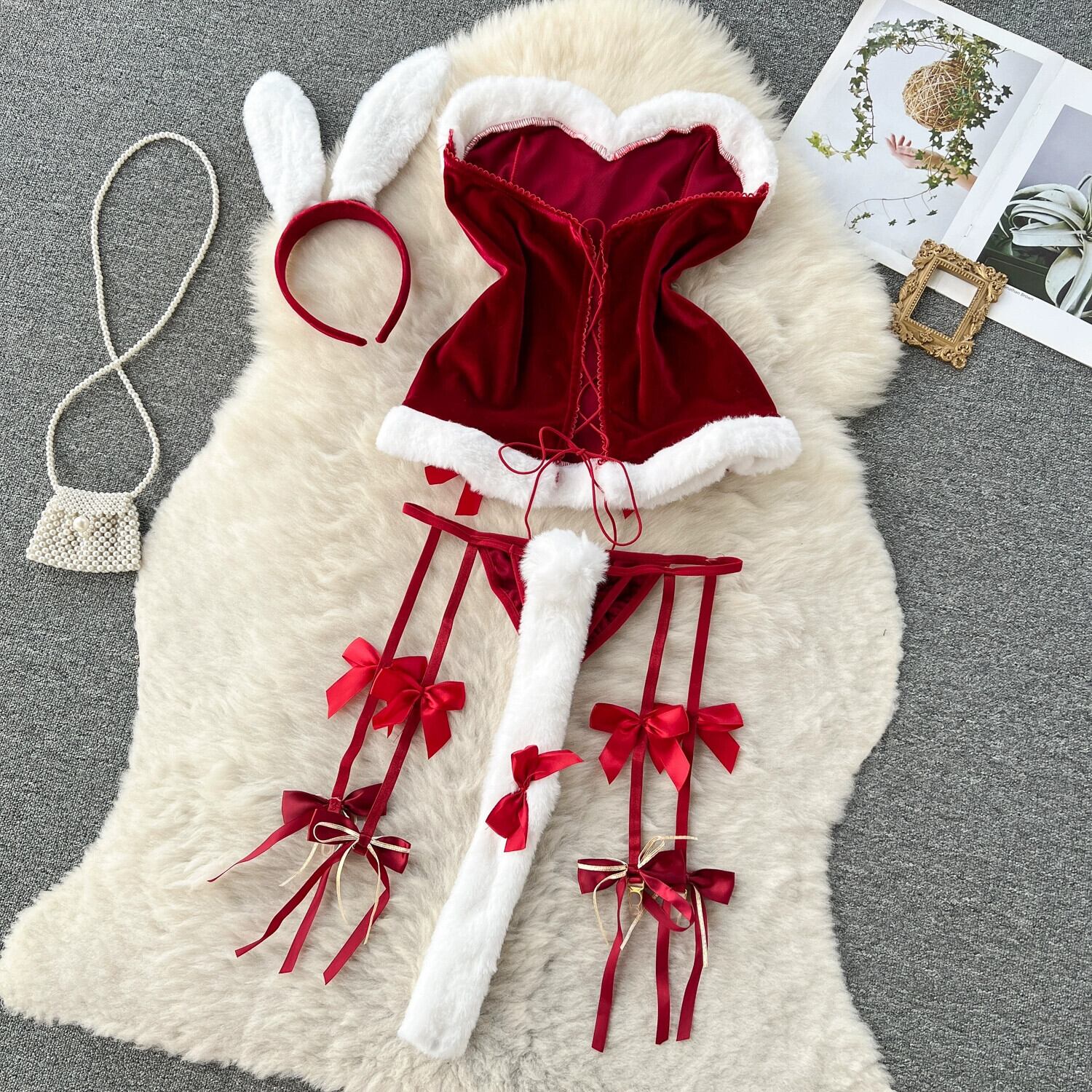 キュートで甘いバニーファーステッチベルベットチューブトップミニスカートセクシーなコスプレユニムスーツ 大人ガーリー スウィート カジュアル lyxaj4288773293