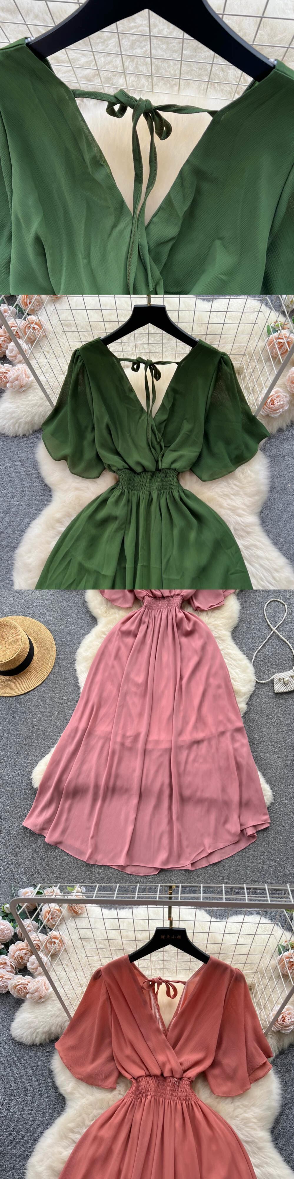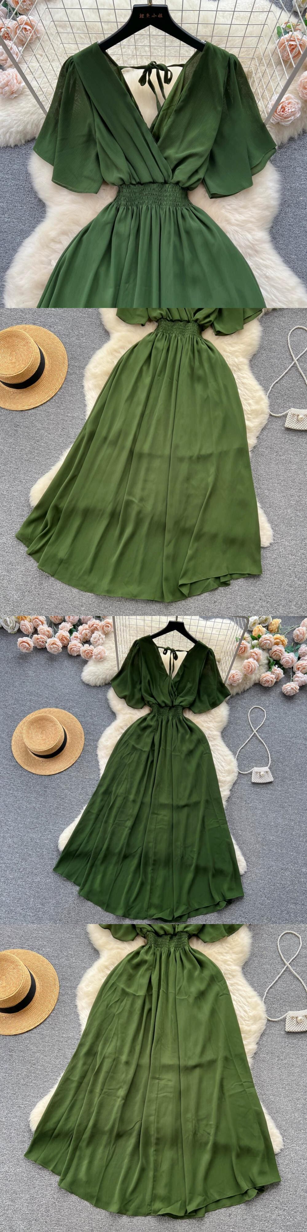 シフォンドレス 2023 フェミニン V ネック弾性ウエスト痩身ロング海辺休暇ビーチスカート エラスティック 伸縮 Vネック lyxaj91548728118