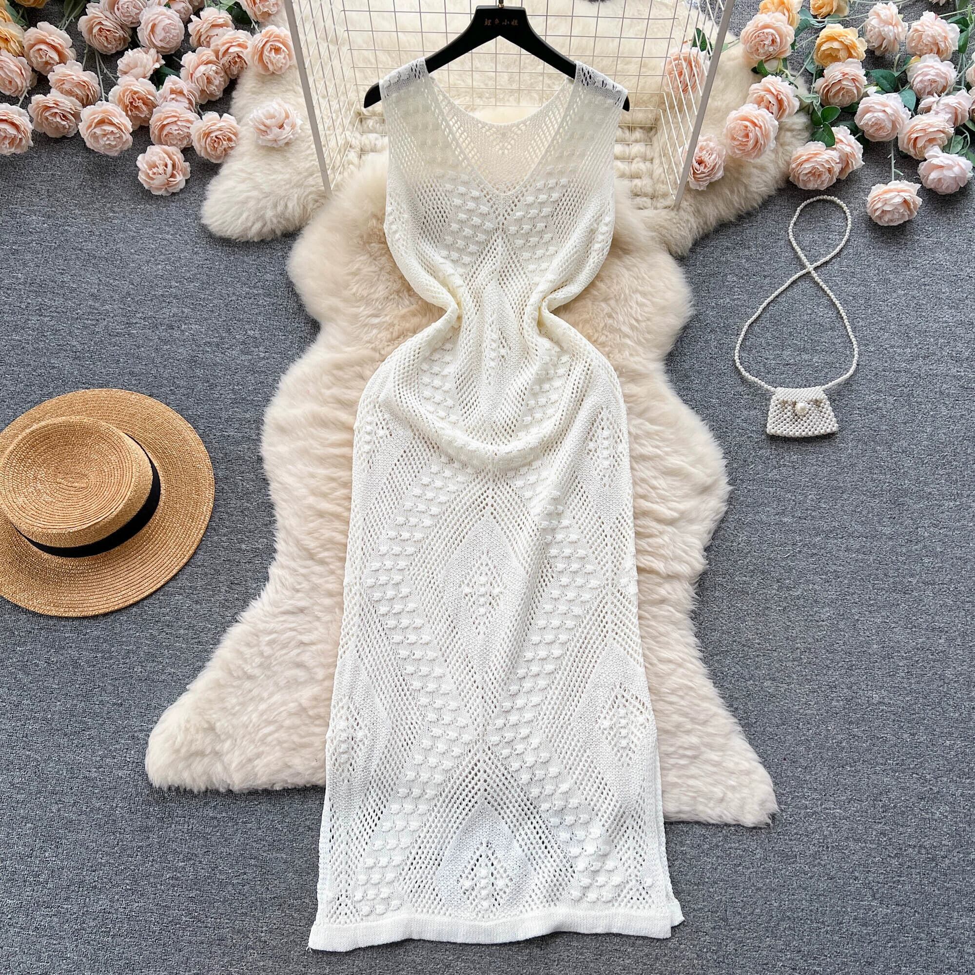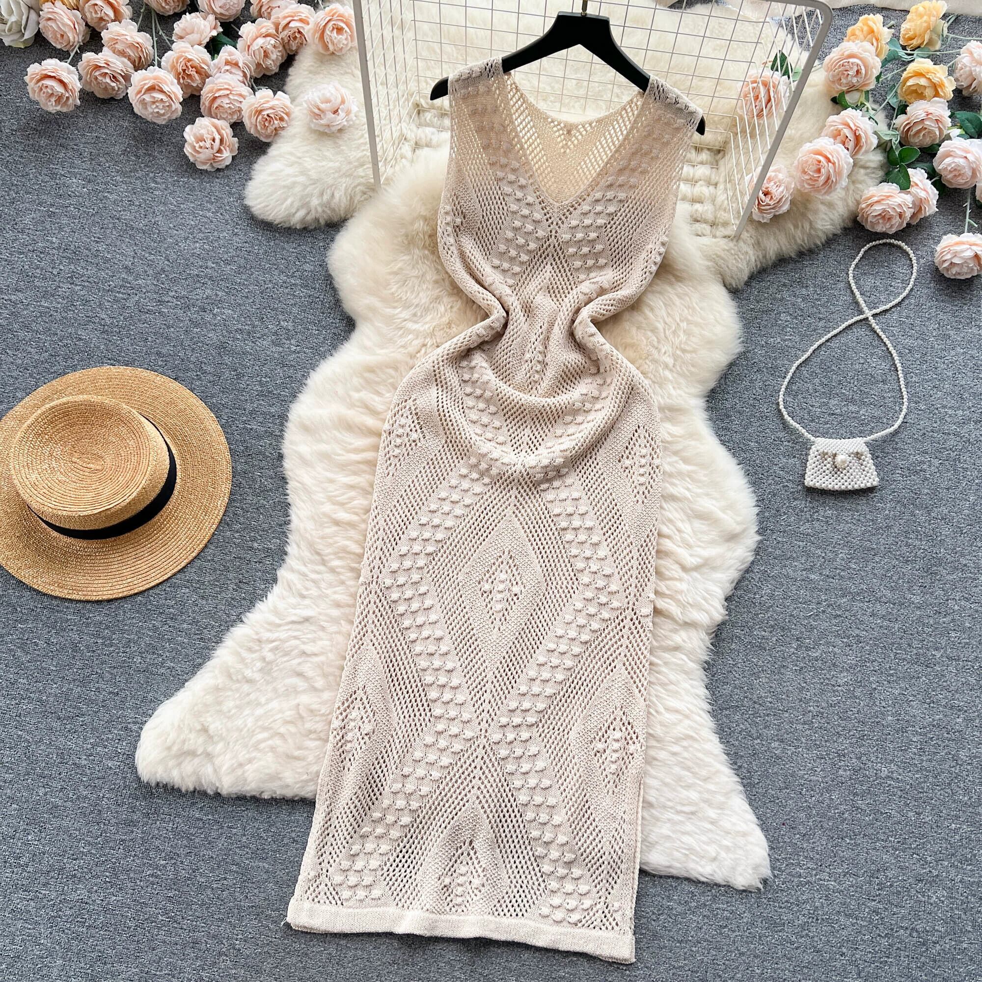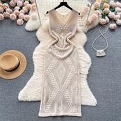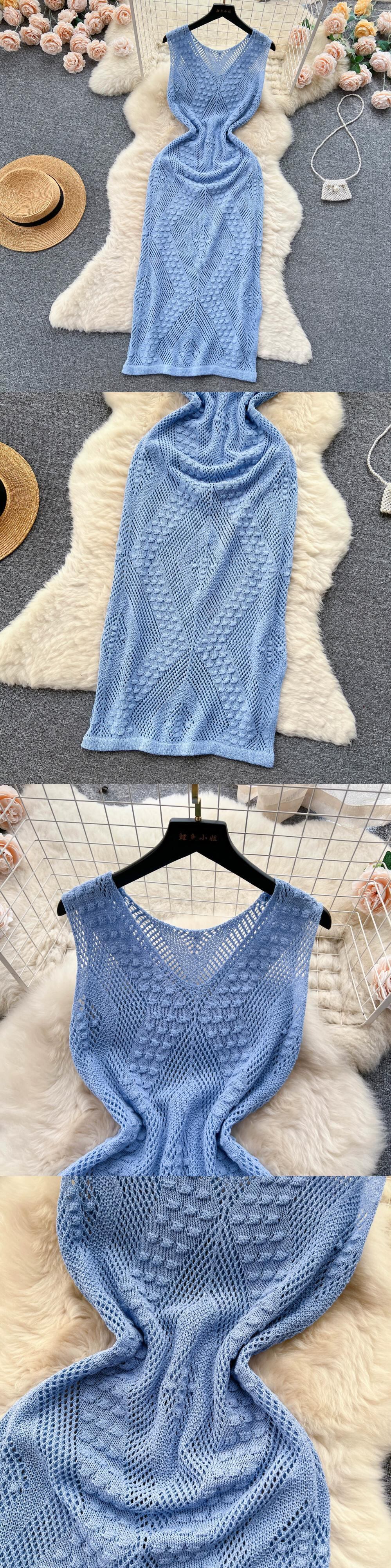 シックなニッチレトロ中空かぎ針編みニットドレス女性のスリムな気質スリットノースリーブベストスカート lyxaj46599570932