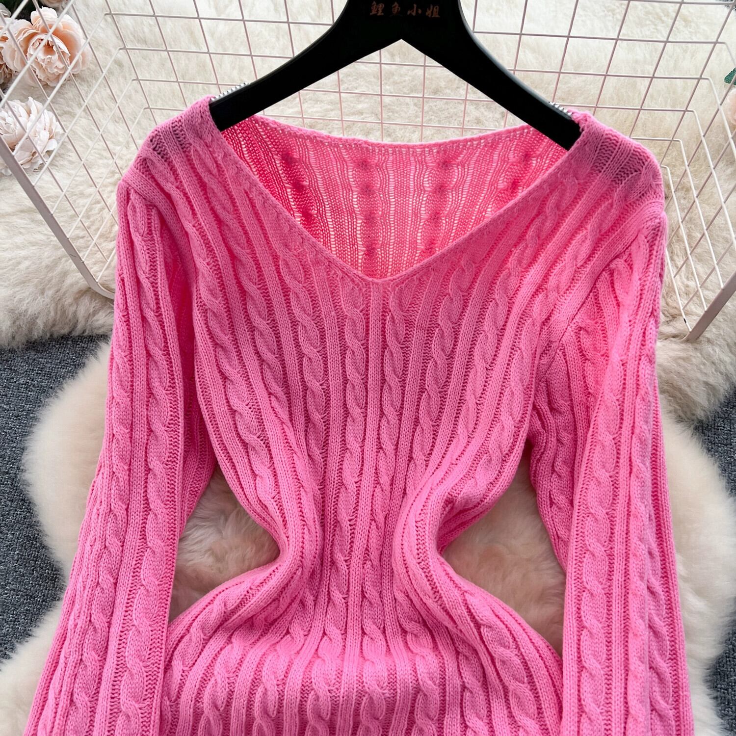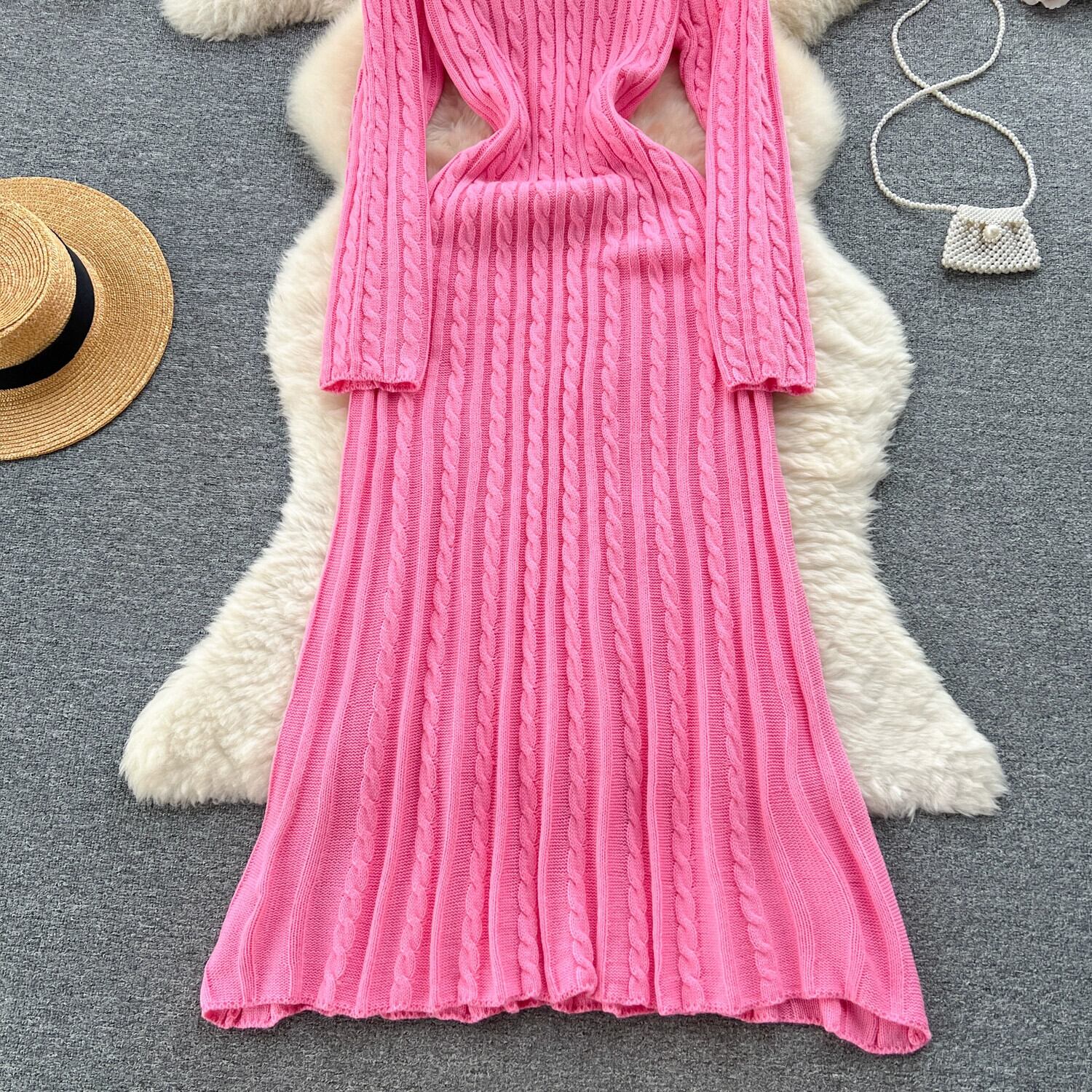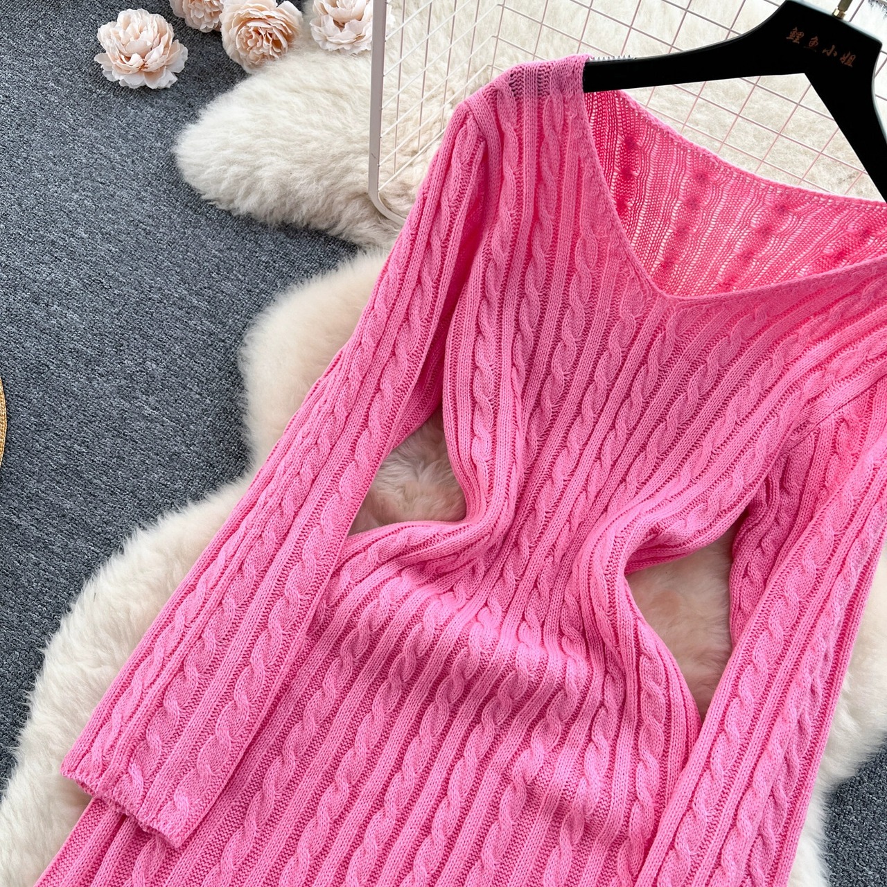 フレンチレトロツイストニットドレス女性の秋と冬の新しい弾性痩身痩身気質ミッドレングスボトリングスカート エラスティック 伸縮 オータム 秋物 ウィンター 冬物 lyxaj19788690183