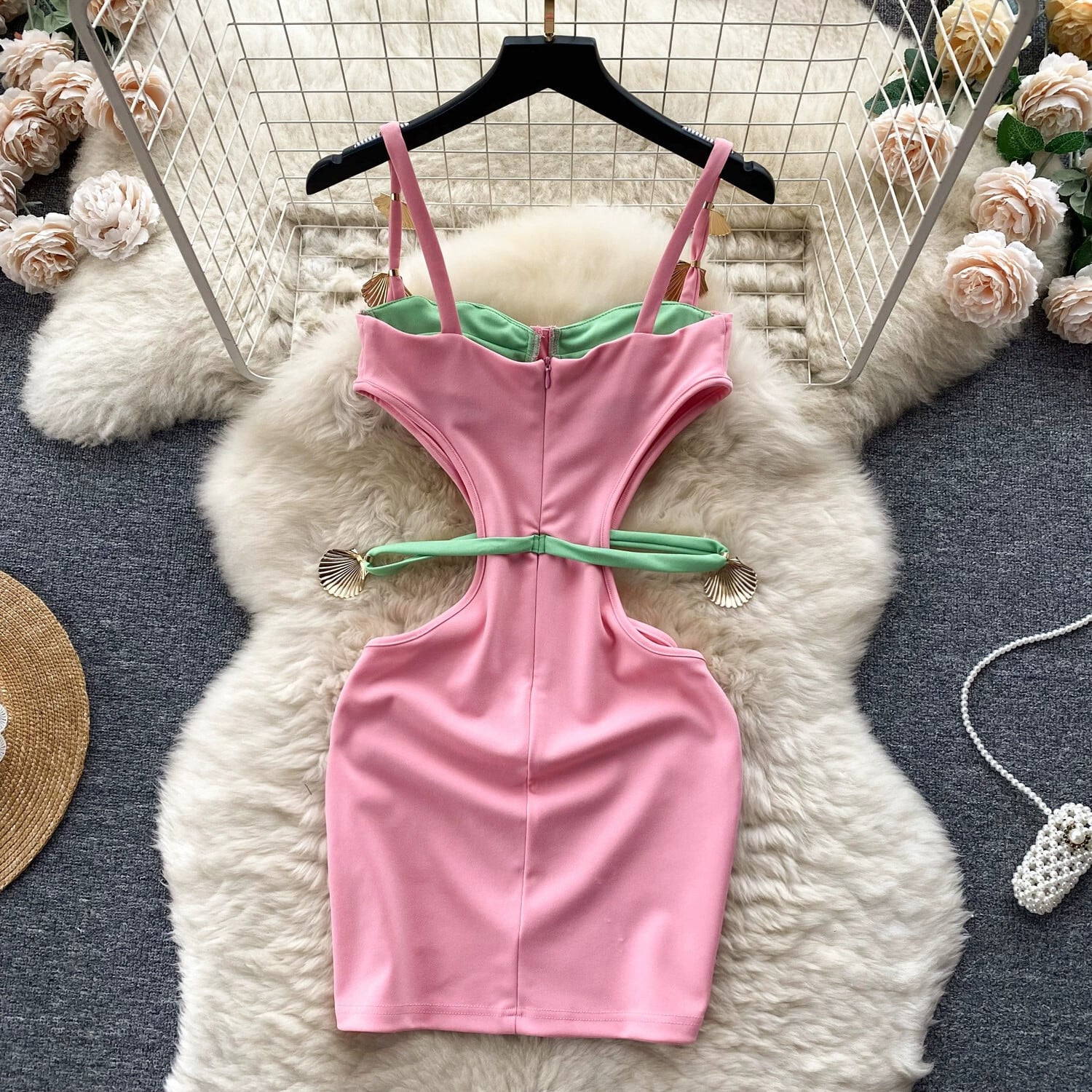 ヨーロッパとアメリカのスタイルのセクシーな中空ウエスト露出シックなサスペンダードレス女性のニッチなデザインのスリムでヒップを包み込むショートスカート ヨーロピアン lyxaj89157539939