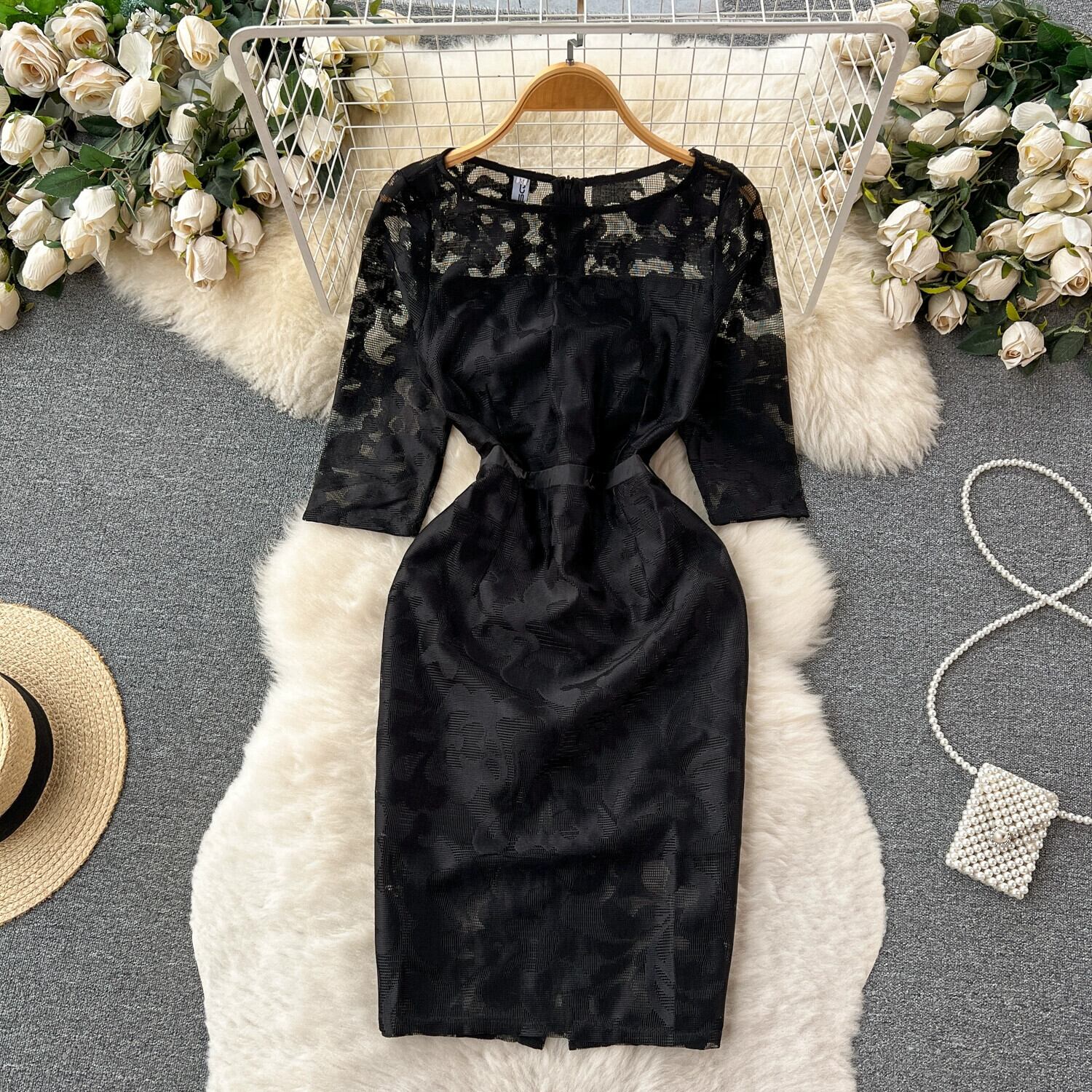 2023 新しい夏のスタイル軽くて洗練されたスタイルのハイエンドメッシュ刺繍ドレス女性痩身とヒップハグワンステップスカート サマー 夏物 lyxaj34667274625