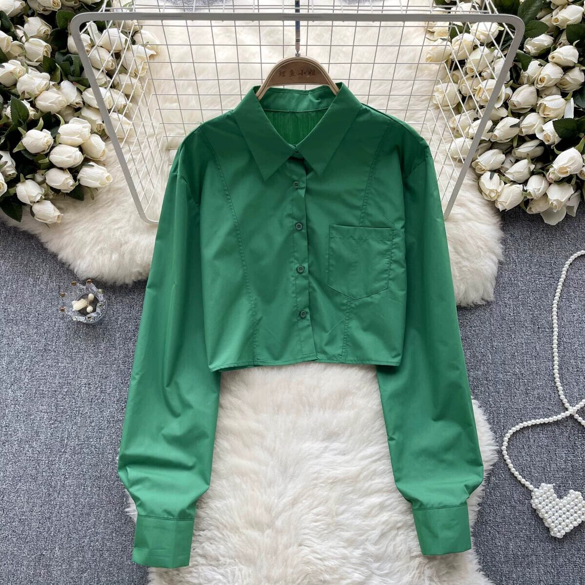 シックな夏フレンチ長袖ラペルシングルブレストシャツレディースニッチカジュアルルーズ万能ショートトップ ロング サマー 夏物 lyxaj52704750000