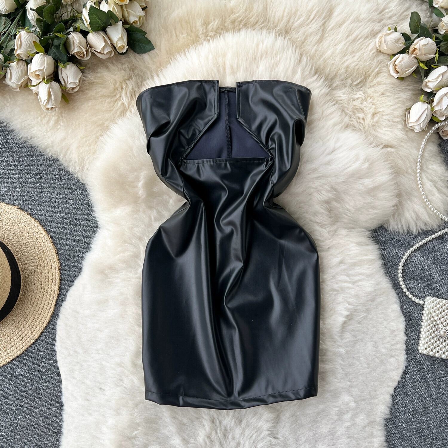 ヨーロッパとアメリカの ins スタイルの夏の新しい pu レザーワンショルダー中空チューブトップセクシーなドレスヒップカバードレストレンディな サマー 夏物 ヨーロピアン lyxaj45874671436