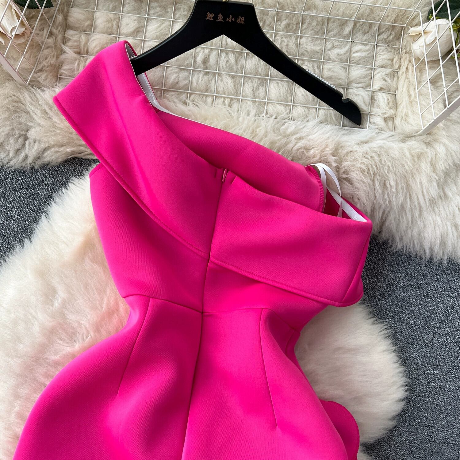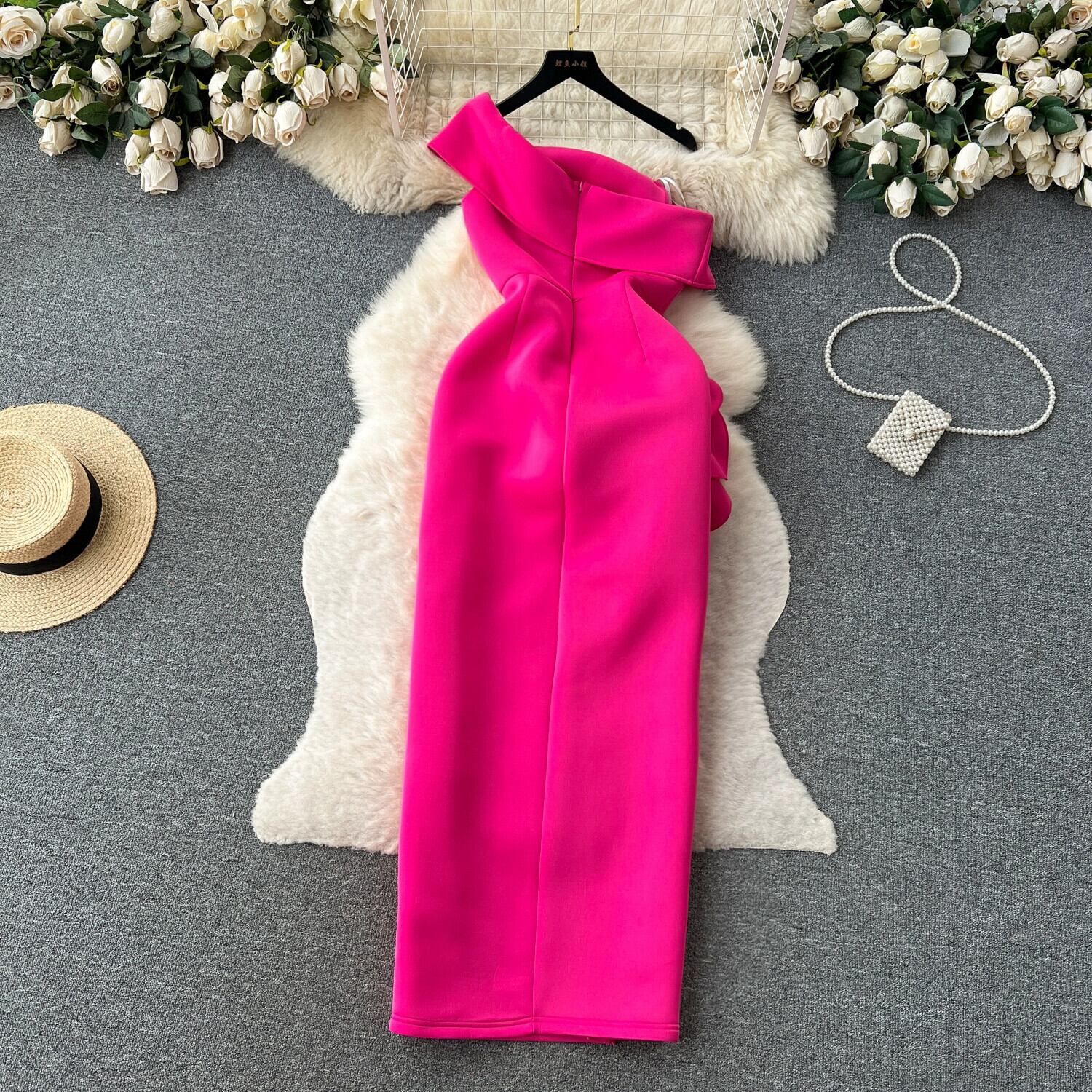 ヨーロッパとアメリカンスタイルの立体フラワーデザイン斜め襟オフショルダーハイウエストドレス女性スリムでハイエンドのスリットドレス ヨーロピアン lyxaj65351913452
