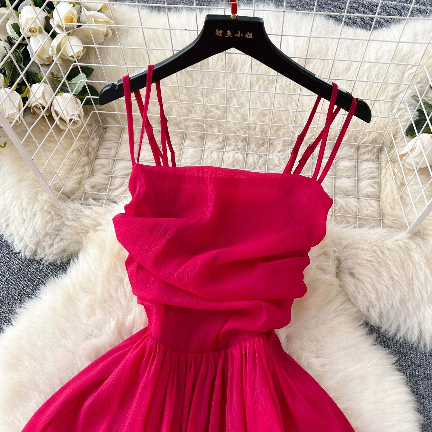夏のレディーススタイルのサスペンダードレス女性、プリーツデザイン、超妖精のようなウエスト、軽い高級感と高級感のあるロングスカート サマー 夏物 lyxaj38444609661
