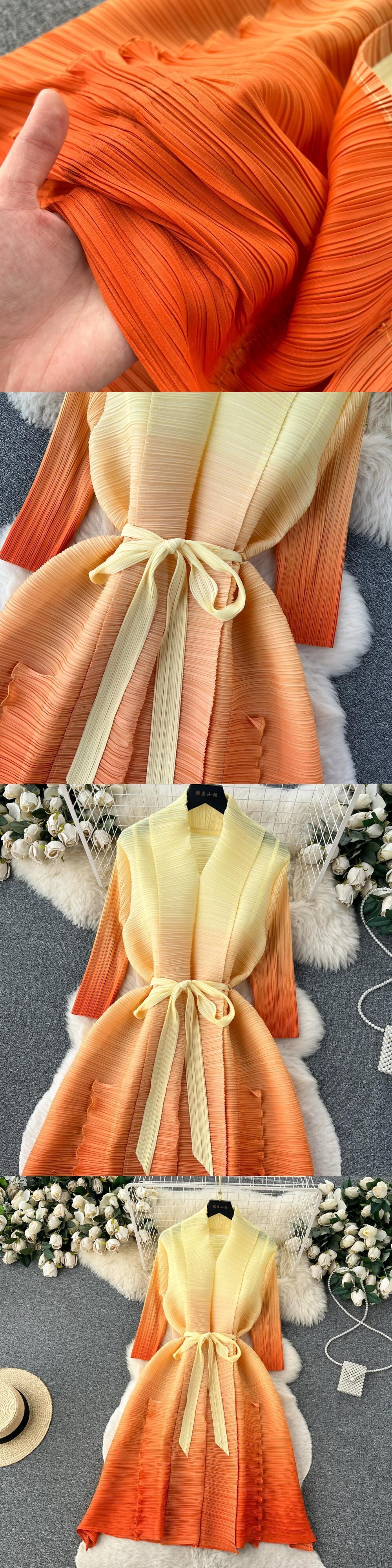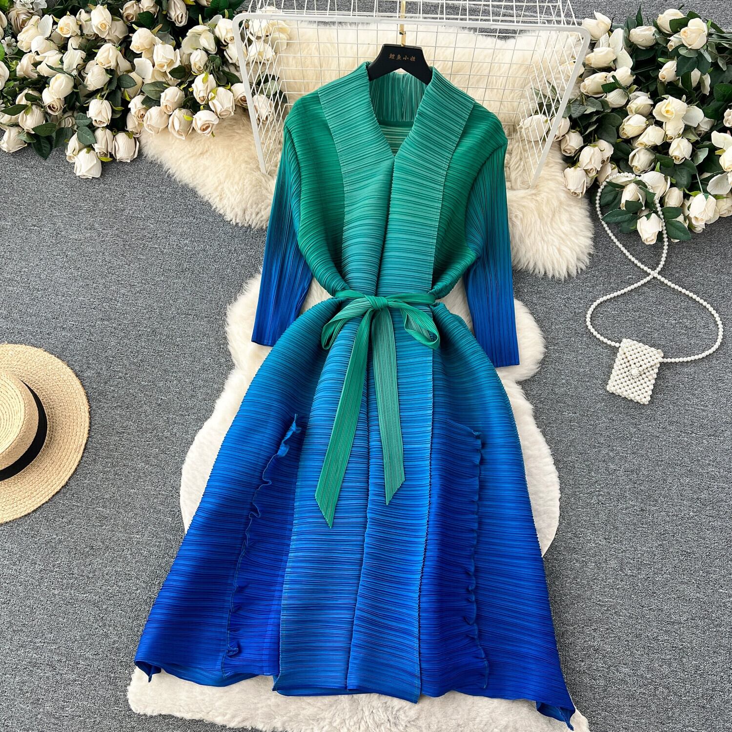 ヨーロッパとアメリカンスタイルのファッションカジュアルグラデーションプリーツドレスレディースルーズレースアップウエストハイエンドエレガントなaラインスカート ヨーロピアン lyxaj43234101275
