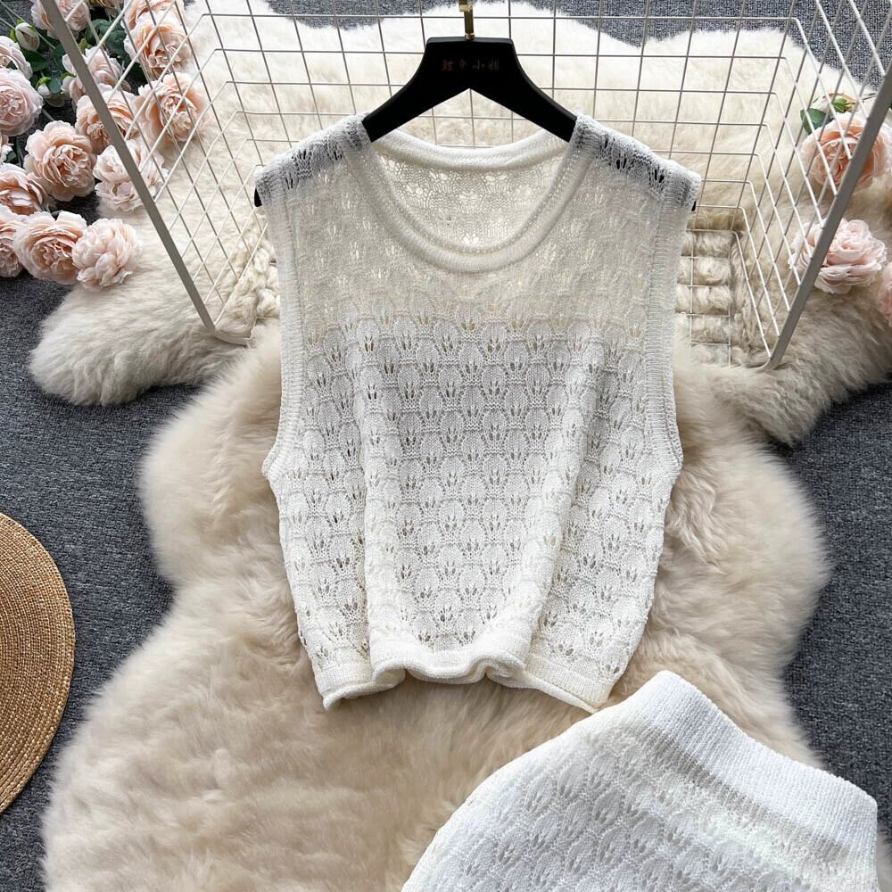 遊牧民スタイルのスカートスーツ女性の夏のノースリーブ中空ベストトップ + ローエッジテルハーフレングススカート 2 点セット サマー 夏物 lyxaj89887213317