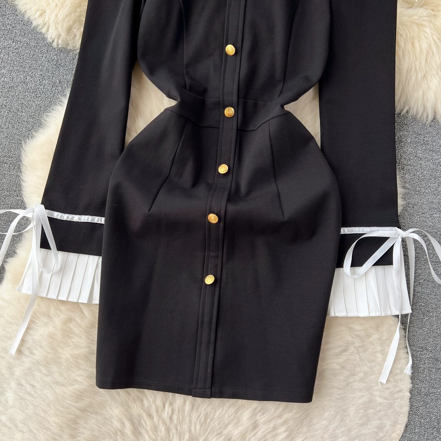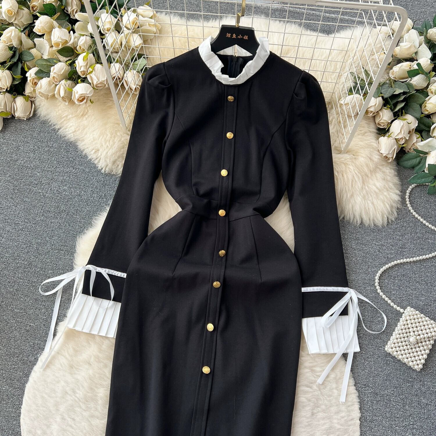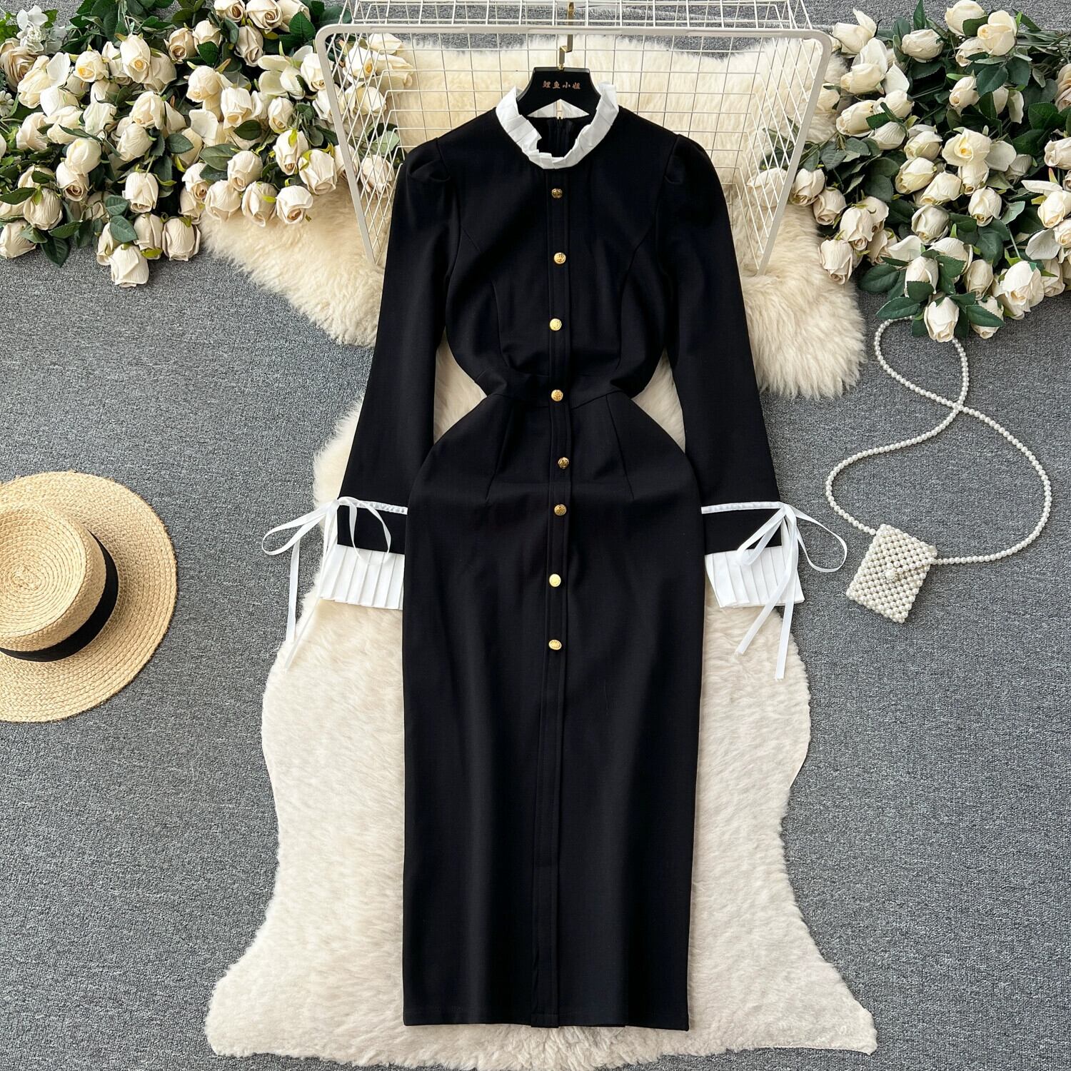 フレンチヘップバーンスタイルのドレスの女性の秋の新スタイルウエスト痩身淑やかなスタイルハイエンド黒ロングスカート ブラック オータム 秋物 lyxaj79055608383