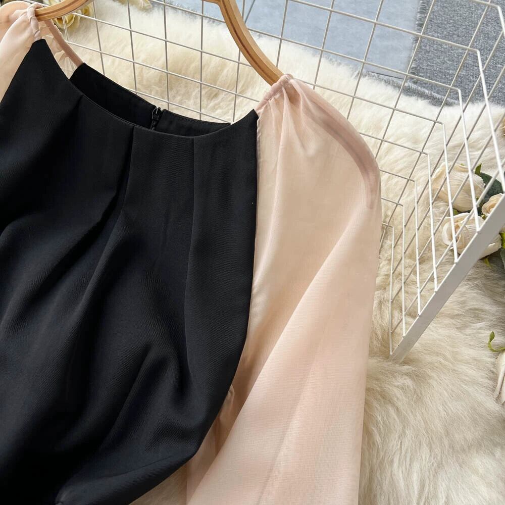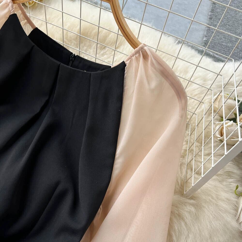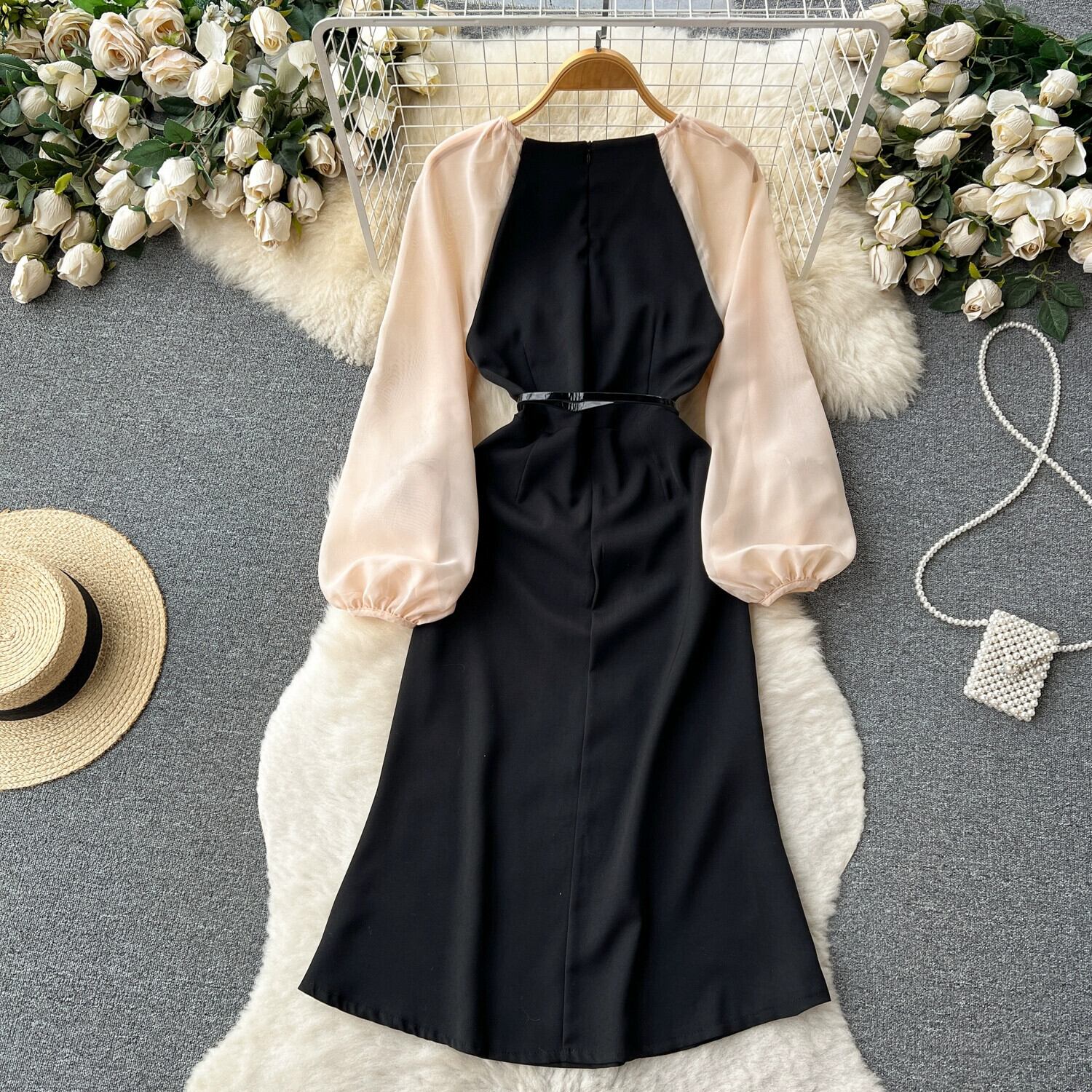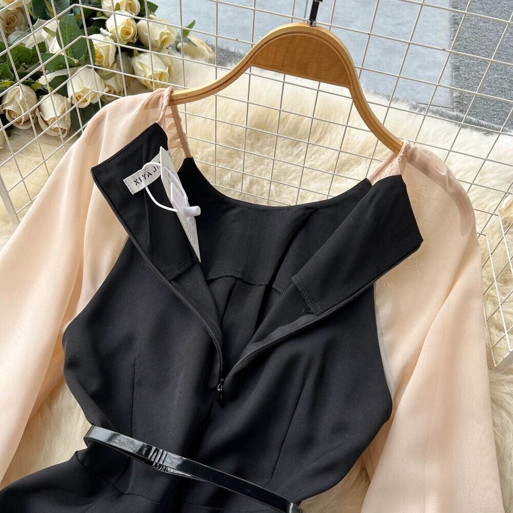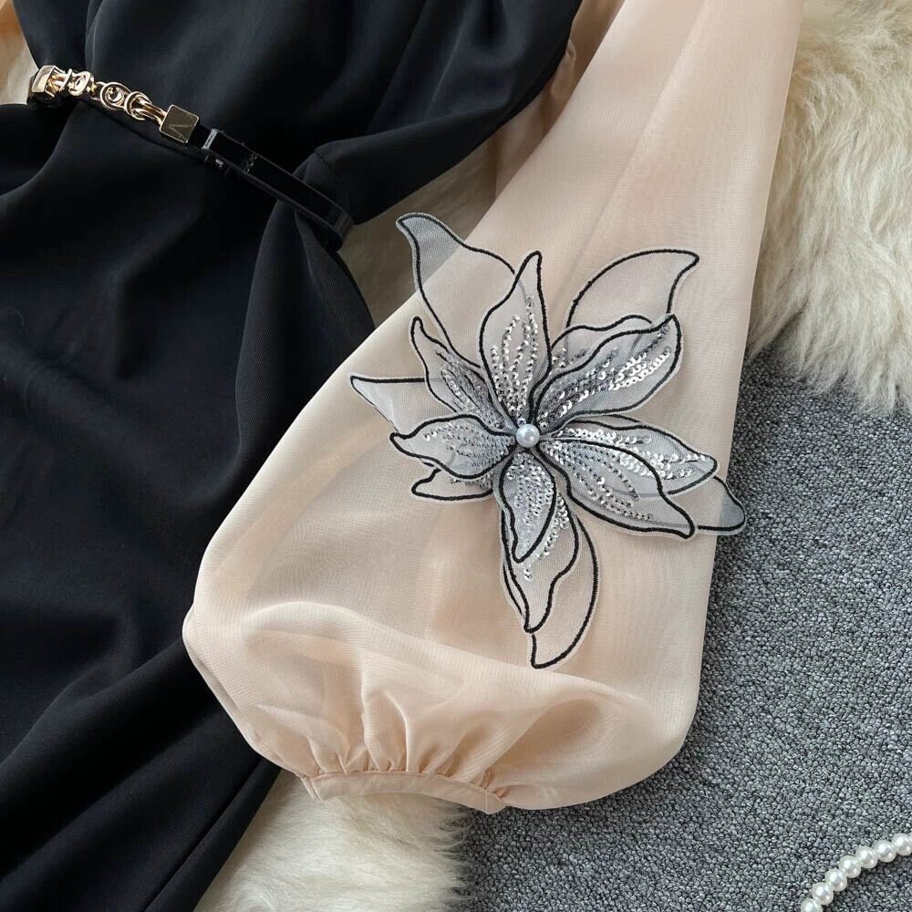ニッチ高級ランタンスリーブドレス女性フレンチレトロメッシュスプライシング長袖ウエスト立体花妖精ドレス ロング フラワーデザイン lyxaj28993377478