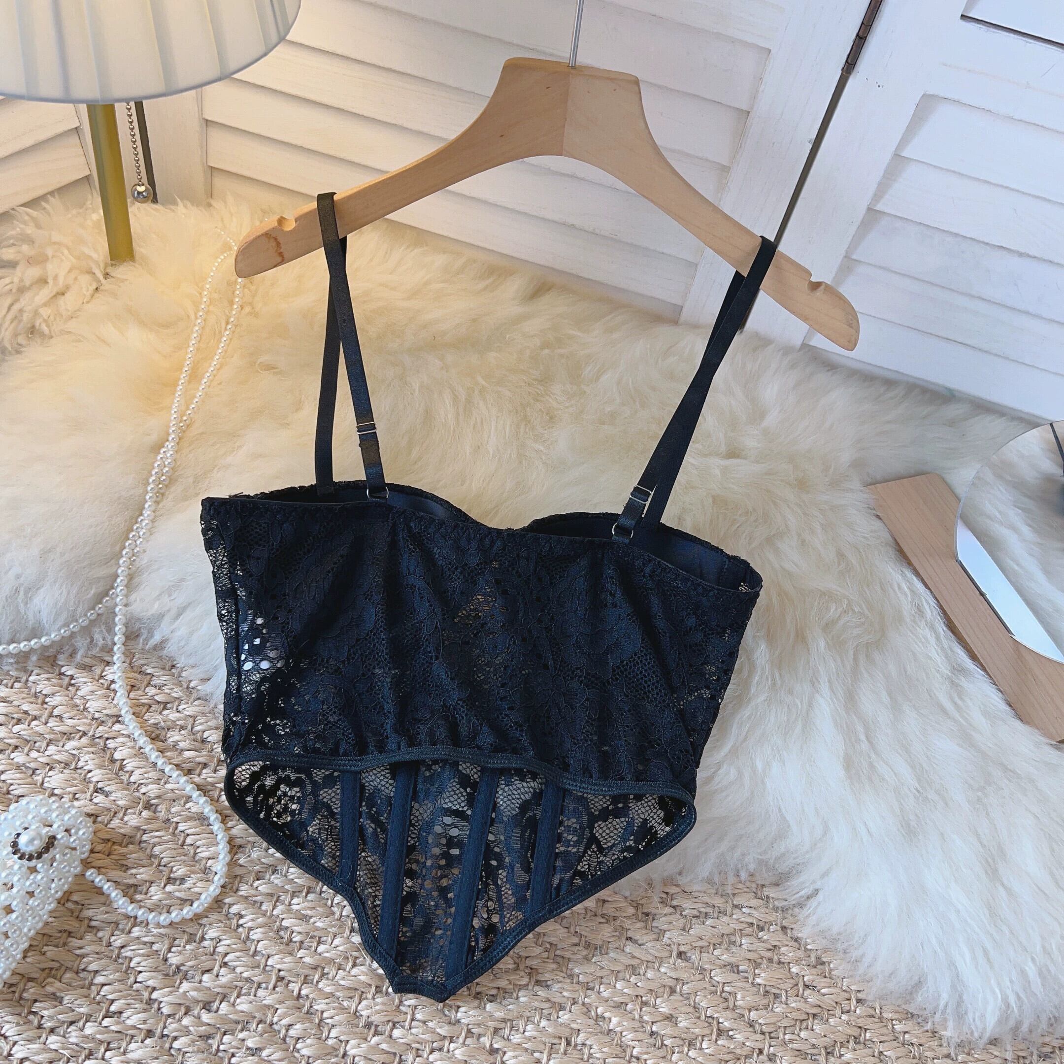 フランス中空レースチューブトップベスト女性スリムとショートスタイルのインナーウェアとアウターウェアヨーロッパとアメリカのネクタイフィッシュボーン小さなスリング ヨーロピアン lyxaj23085547033