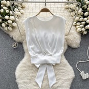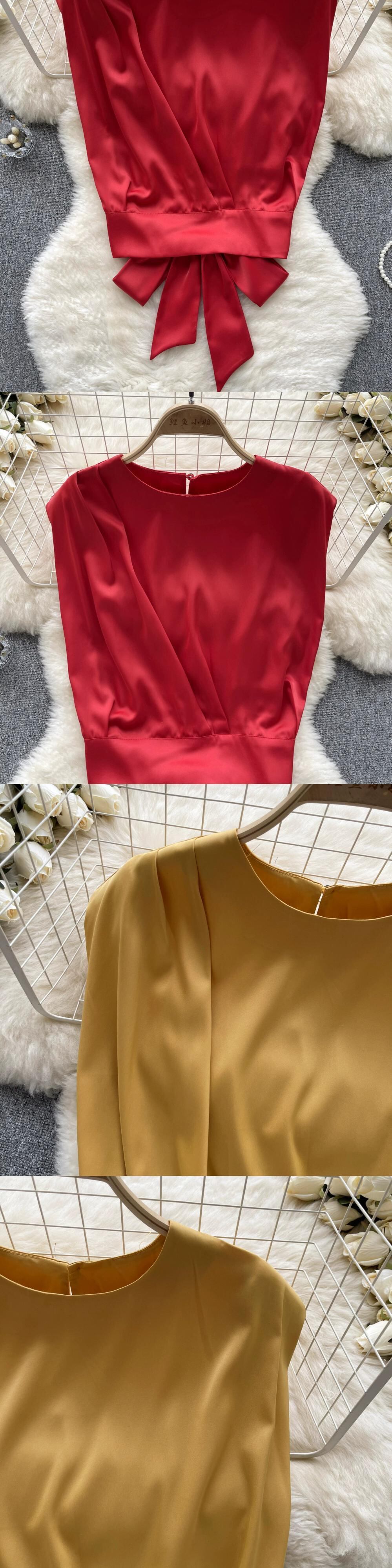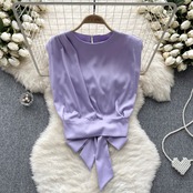 蝶ネクタイ、ノースリーブとウエストレスのデザイン、ニッチでユニークなサテンのトップを備えた夏の軽くて豪華でハイエンドのシャツの女性 リボン サマー 夏物 lyxaj81937899746
