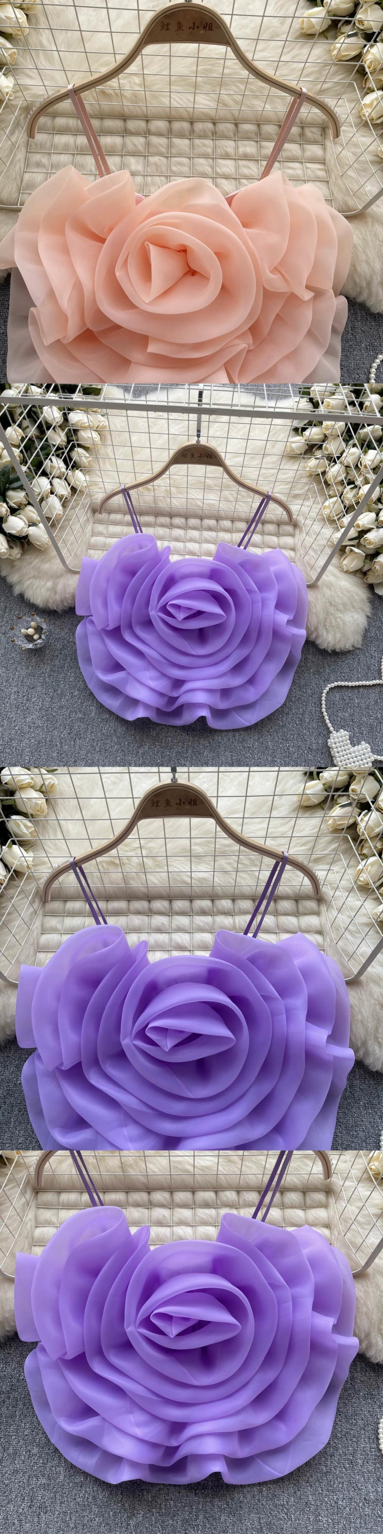 ニッチホリデースタイルオーガンジー立体フラワーキャミソールレディース夏の新しいファッションシックな万能ショートトップ サマー 夏物 フラワーデザイン lyxaj14028736162