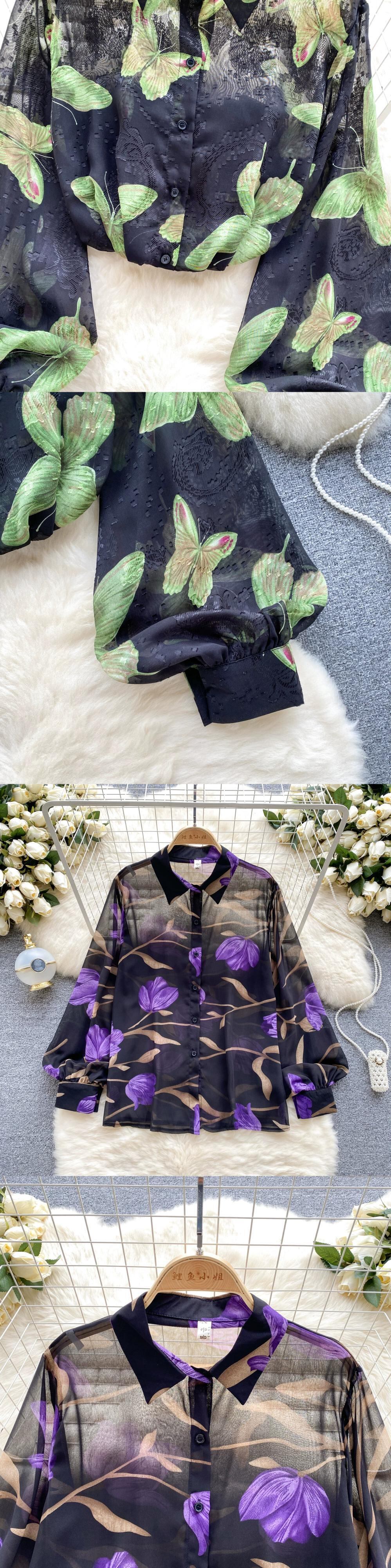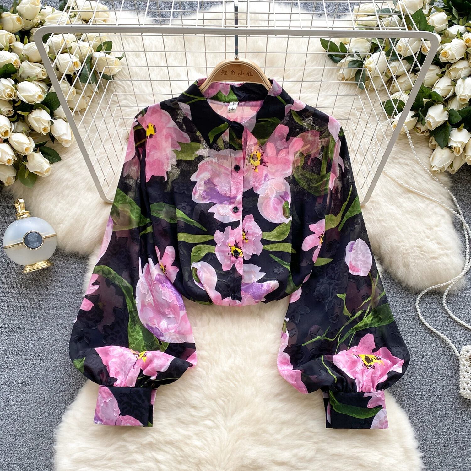フレンチレトロチュール花柄シャツ女性の夏ポロカラーランタンスリーブニッチシックルーズトップ サマー 夏物 lyxaj11413178553