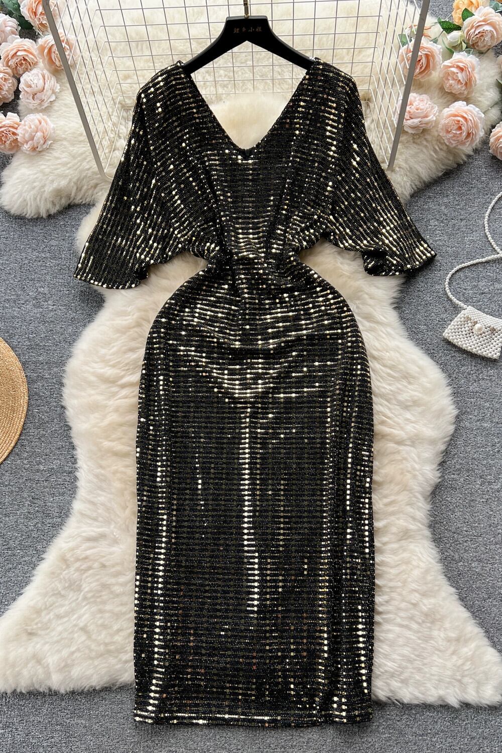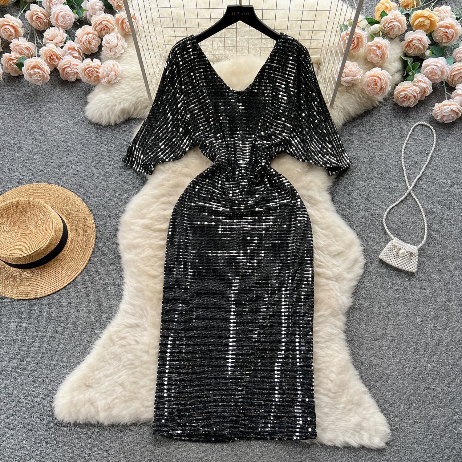 夏のセクシーなハイエンドのスパークリングドレス女性 V ネックデザインウエストを締める純粋な欲望のネクタイ斬首女性のお尻をカバーするスカート サマー 夏物 Vネック ピュア lyxaj34141985535