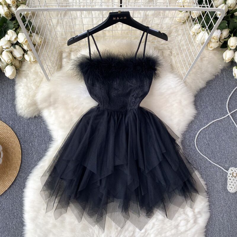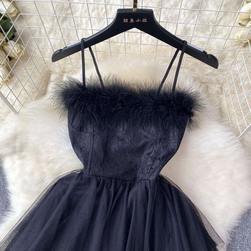 フレンチサスペンダードレスの女性の夏のレースのフェザーステッチデザインニッチハイエンドメッシュスカート サマー 夏物 lyxaj98627173139