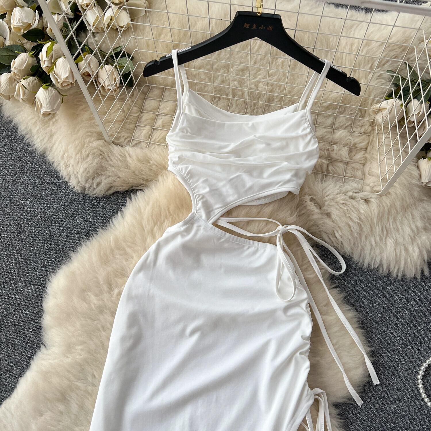 ヨーロッパとアメリカンスタイルのセクシーな中空ウエスト露出レースアッププリーツサスペンダードレス女性のスリムフィットヒップハグハイスリットスカート ヨーロピアン lyxaj89041024791