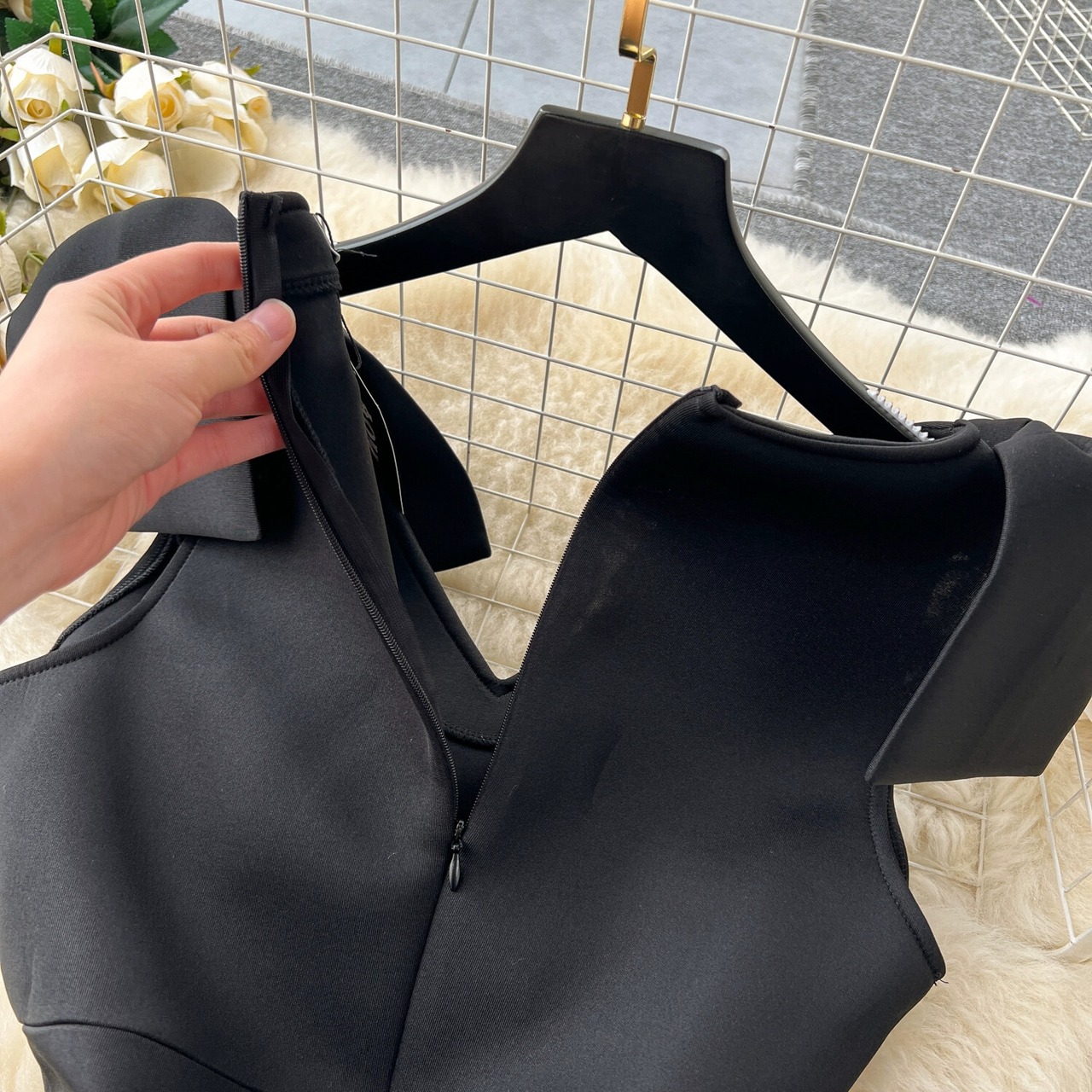 セクシーな純粋な欲望スタイルの弓 V ネックノースリーブメッシュスプライシングドレス女性ウエスト抱きヒップドレス リボン Vネック ピュア lyxaj11669792982