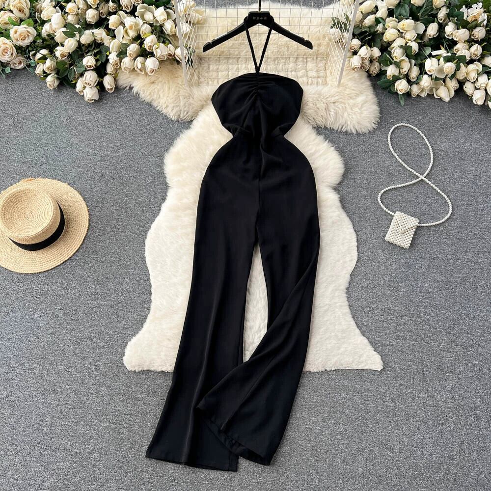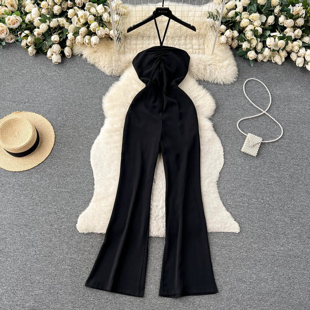 セクシーなホルターネックストラップ、チューブトップジャンプスーツ、ニッチデザイン、ワイドレッグ、スリムフィットパンツ、女神ロイヤルシスターの衣装の女性 lyxaj61523955056
