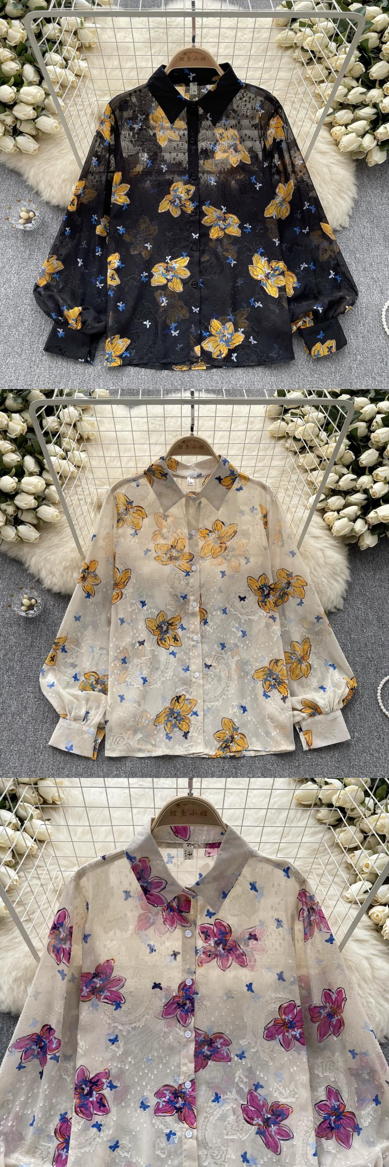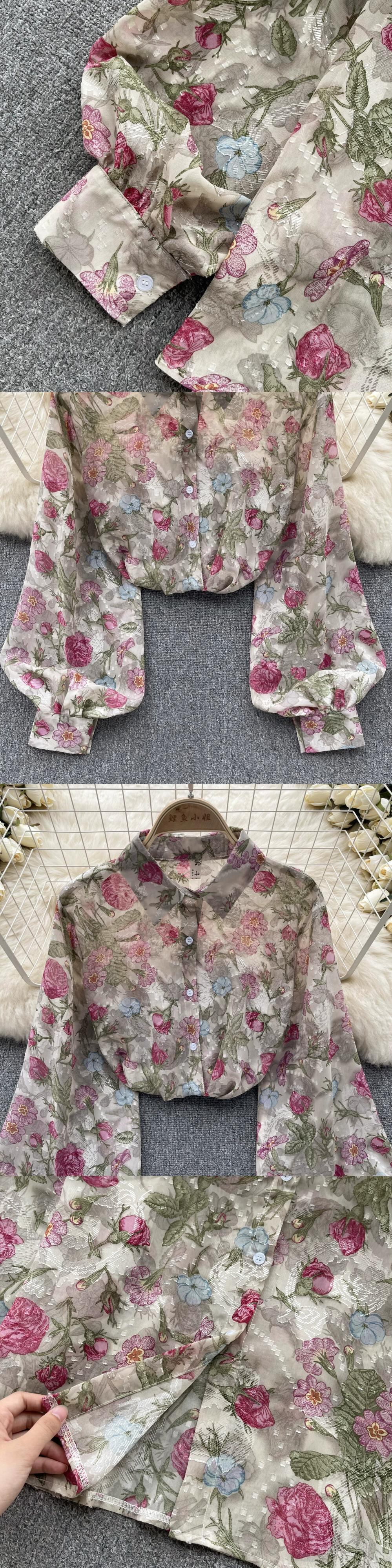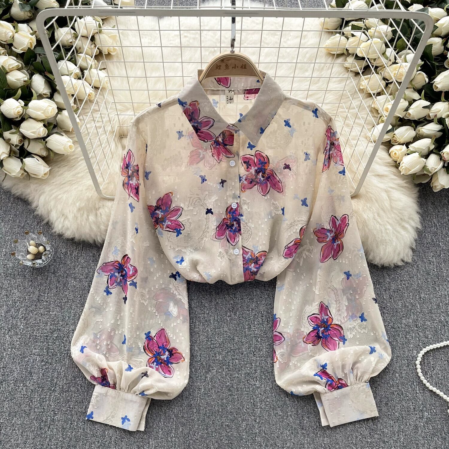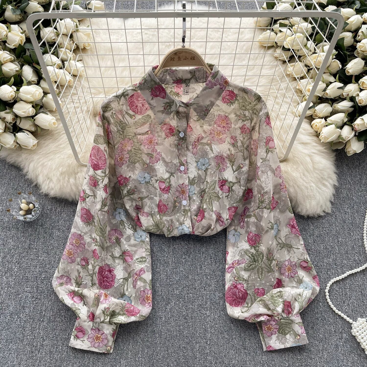 ランタンスリーブ、ルーズなデザイン、スリム、シックでニッチなトップスを備えた春夏のフランスのレトロな花柄シャツレディース スプリング 春物 サマー 夏物 lyxaj1942176033