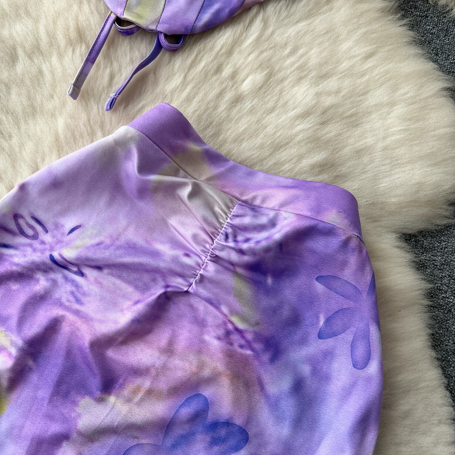 ドーパミン ピュア デザイア タイ タイダイ プリント ストラップ ホルターネック ベスト + ハイウエスト痩身お尻カバー スリット スカート lyxaj62260348507