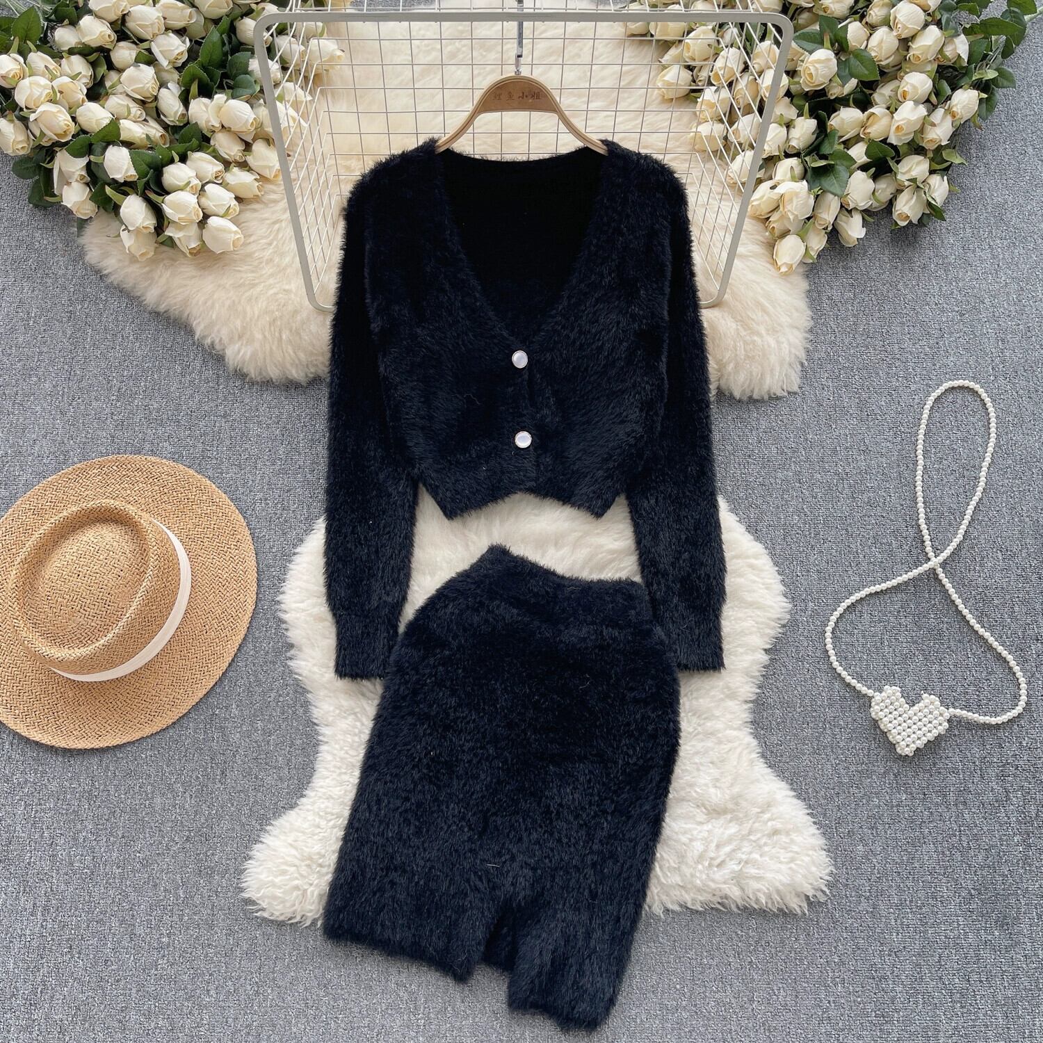 秋冬の新スタイルの嫁スタイルのハイエンド長袖セータージャケット+ハイウエストスカートツーピーススーツ ロング オータム 秋物 ウィンター 冬物 lyxaj65292896172