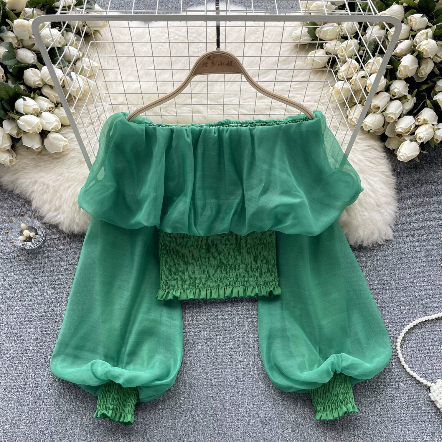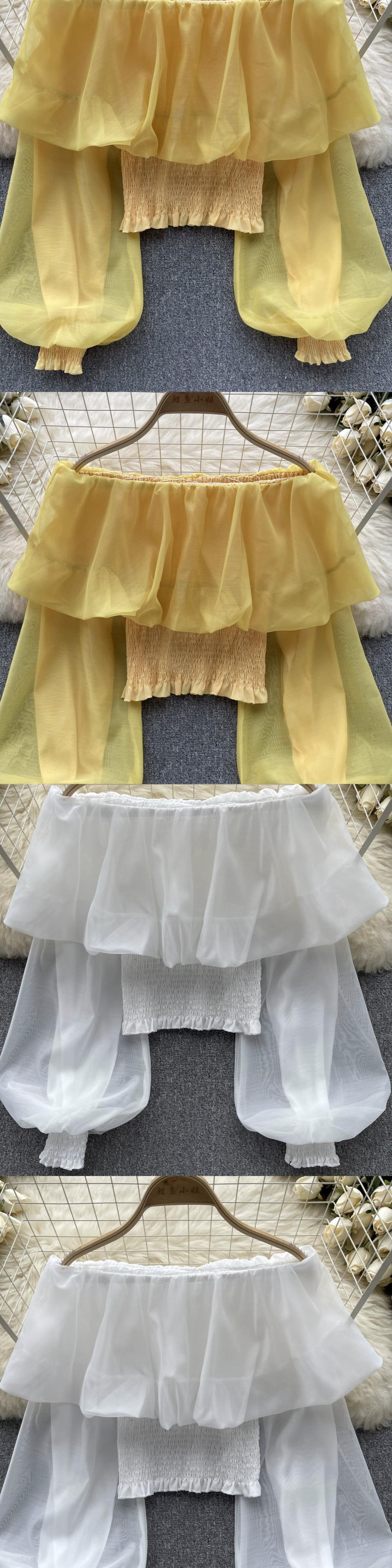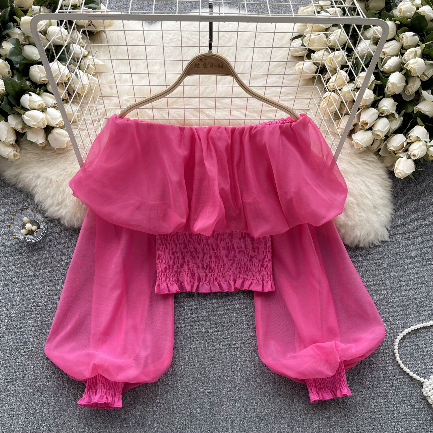 Pure Desire ホットガール スタイル ワンショルダー シャツ レディース 夏 メッシュ フリル ランタン スリーブ ニッチ シック トップ ランタンスリーブ サマー 夏物 lyxaj82825980655