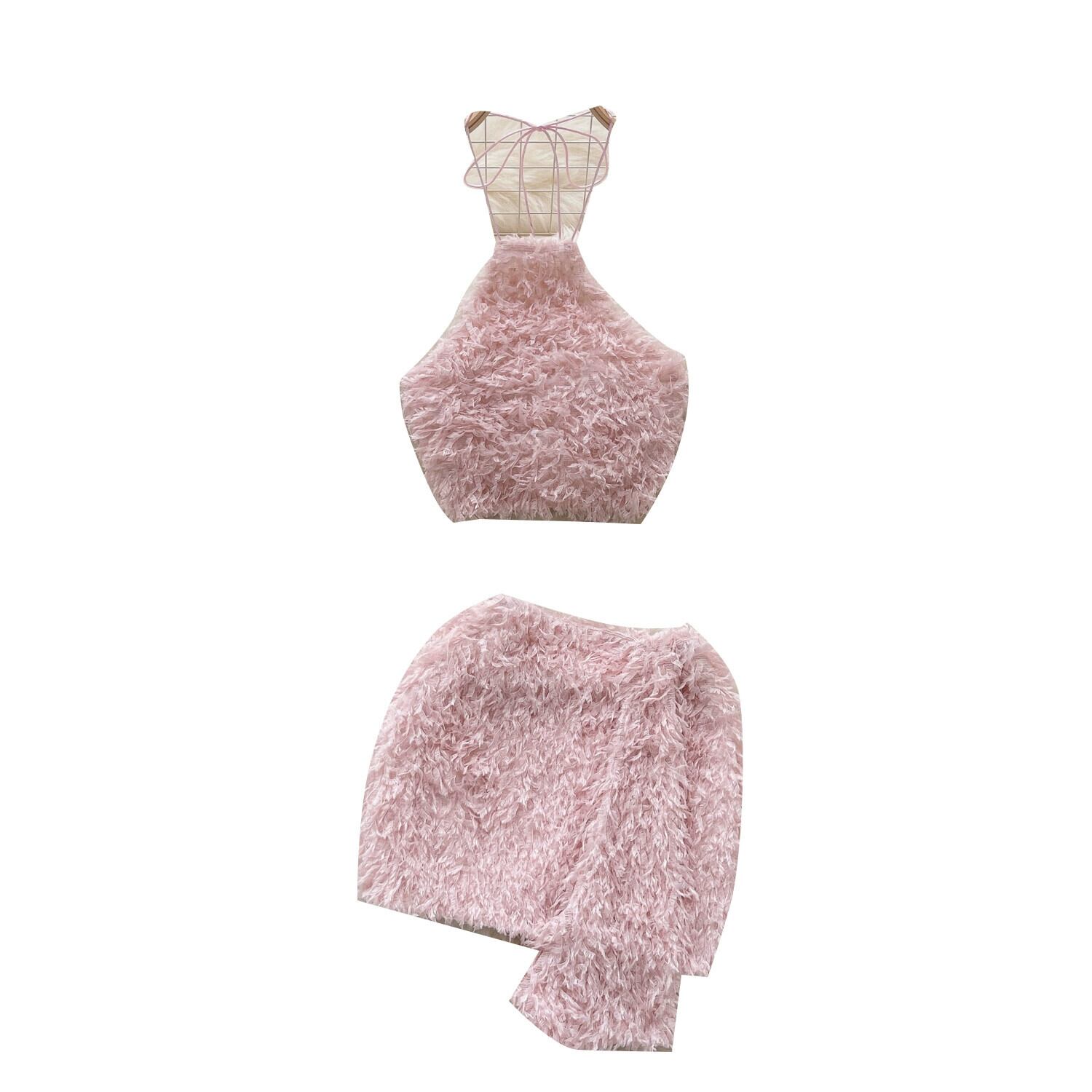 ドーパミン純粋な欲望ホットガールスタイルスーツ女性の夏のホルターネックフェザーキャミソール + ウエストヒップショートスカート サマー 夏物 ピュア lyxaj65101288493