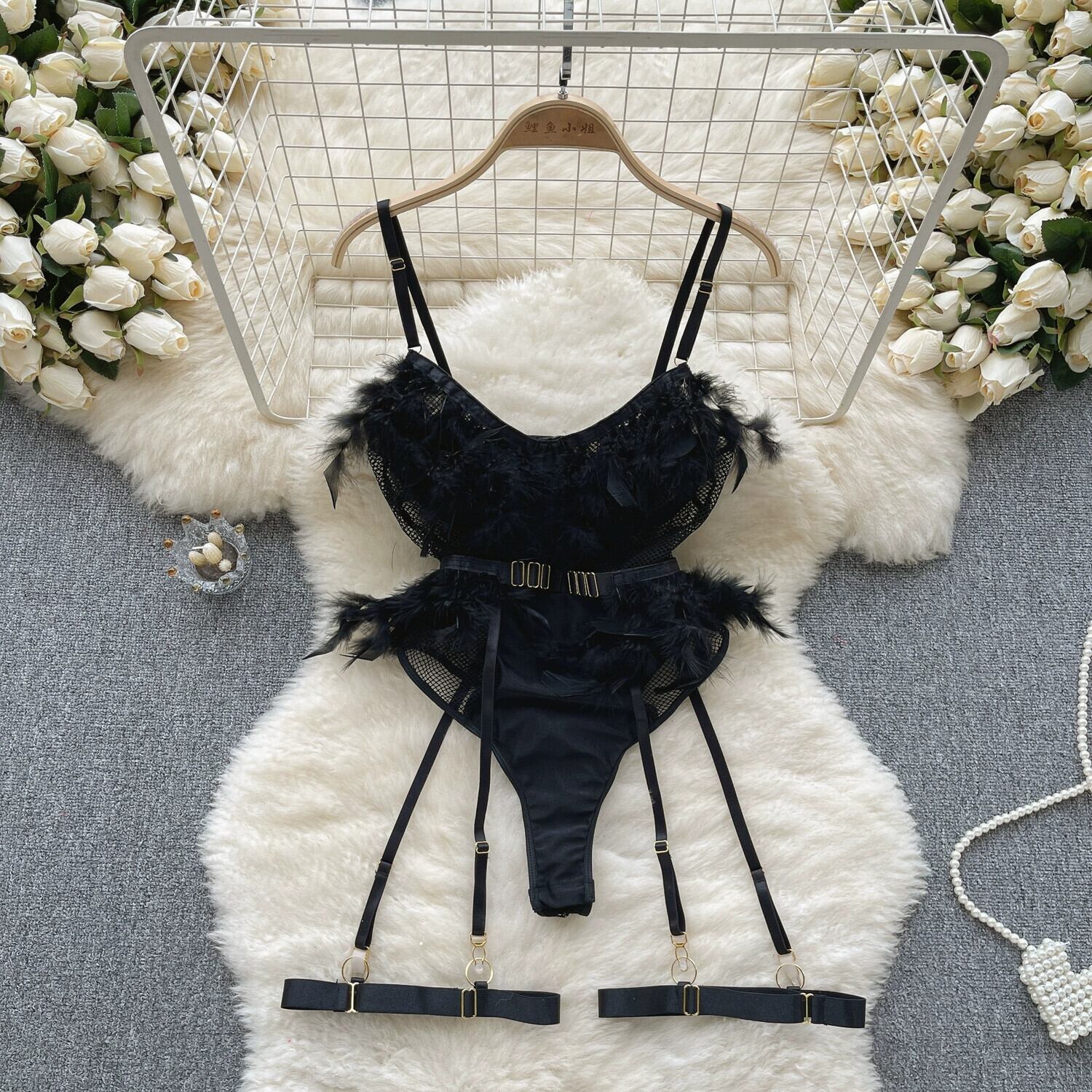 純粋なセクシーなスタイルのフィッシュボーンサスペンダーレースフェザーテルベスト女性ニッチシックなデザインワンピーストップ lyxaj99354869238