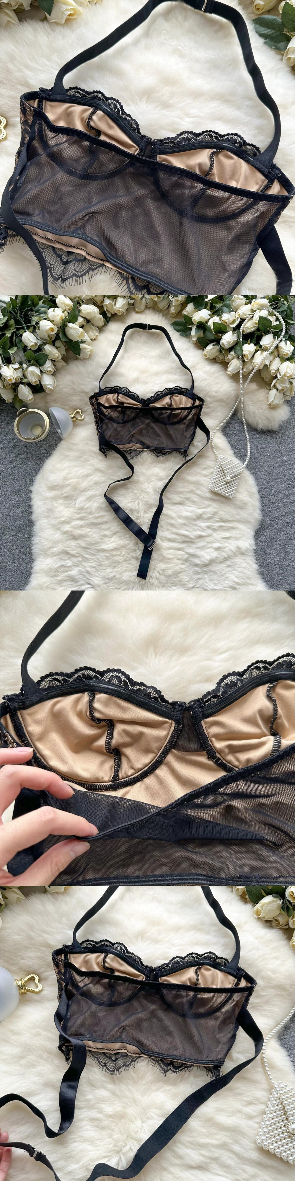 ヨーロッパとアメリカンスタイルのセクシーなチューブトップ、ホルターネック、レースキャミソール、女性ニッチデザイン、スリムショートトップ ヨーロピアン lyxaj10867159342