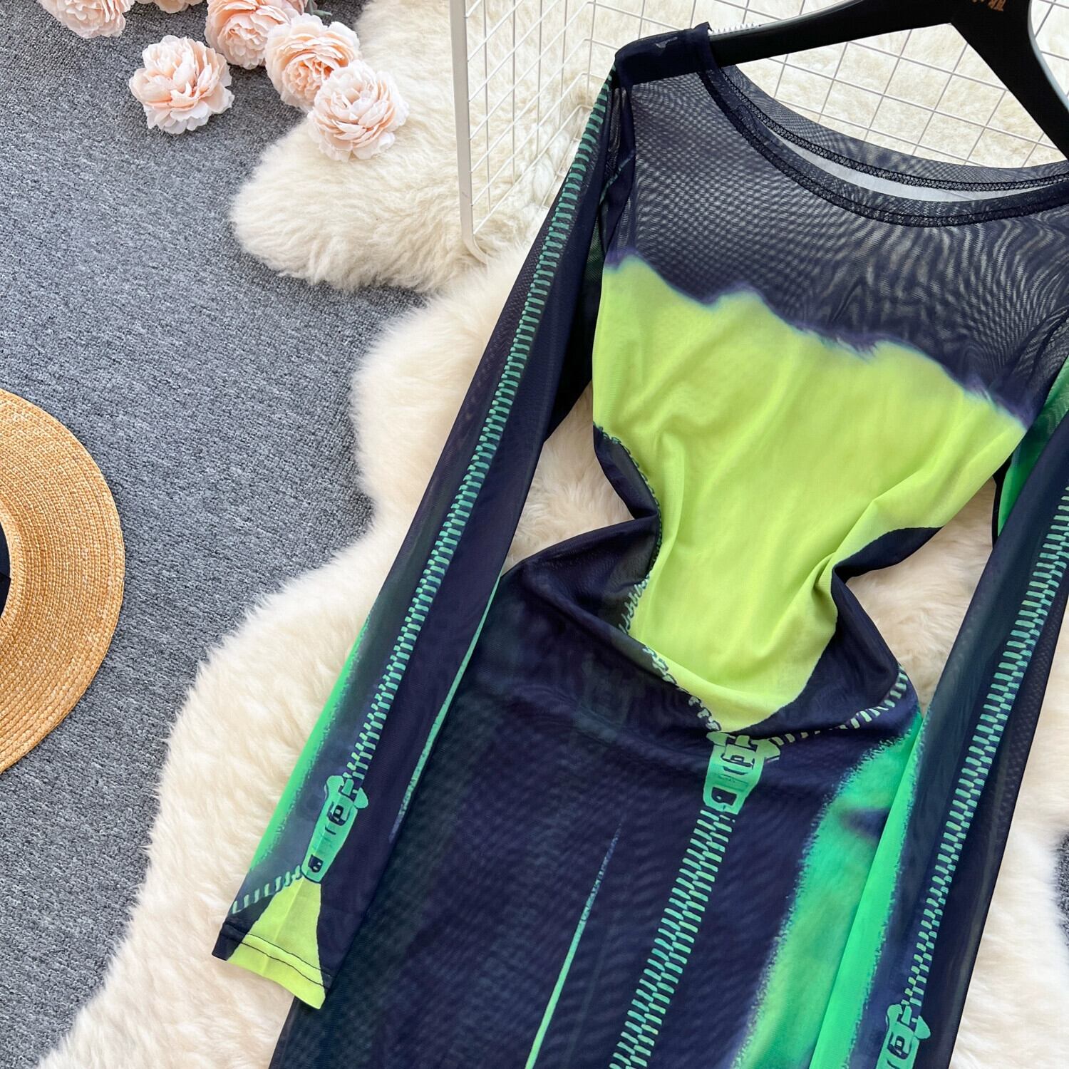ヨーロッパとアメリカのスタイルのプリントドレスの女性、夏のチュール長袖デザイン、ニッチでユニークなタイトフィットの純粋な欲望のロングスカート サマー 夏物 ピュア ヨーロピアン lyxaj12524336658