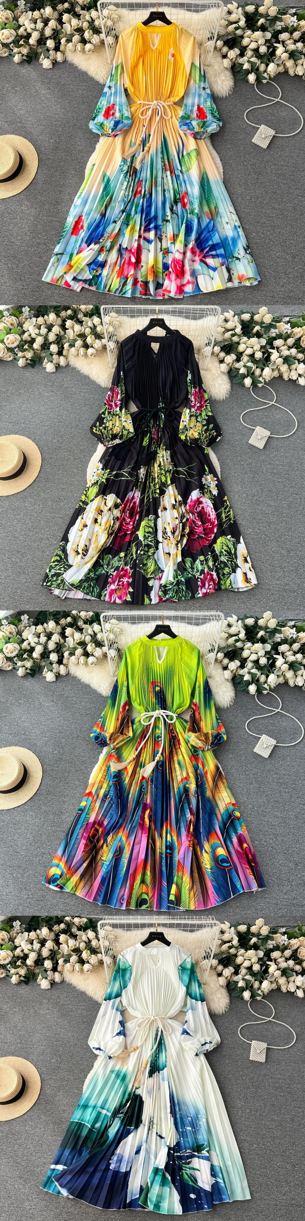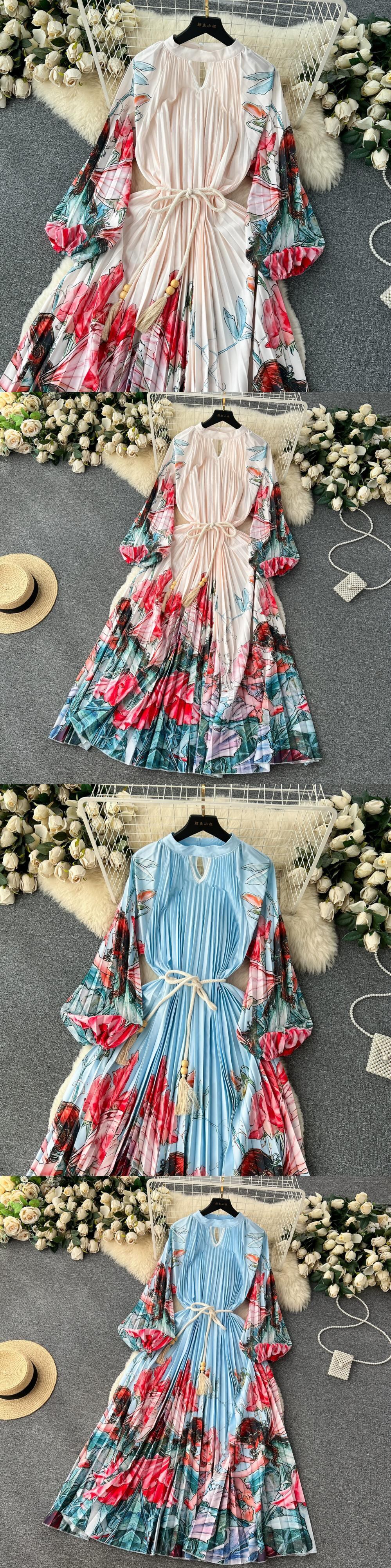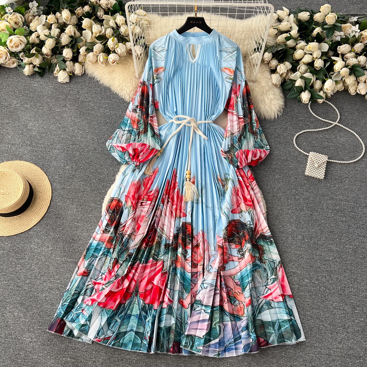 セレブのハイエンドプリントドレスレディースサマーパフスリーブストラップ付きウエストデザインニッチフェアリースカート、大きなスイング付き 夏物 lyxaj69565836417