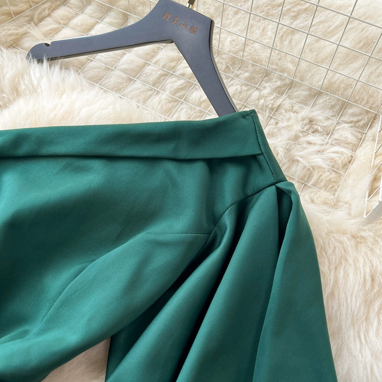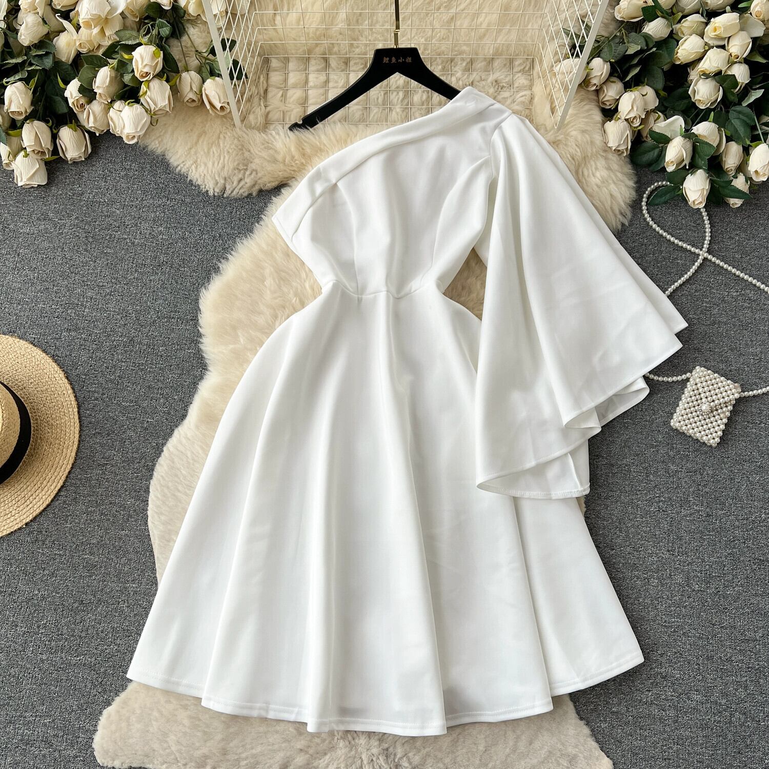 軽くて豪華なレトロエレガントなスラントネックオフショルダー長袖ドレス、ウエストとスリムな気質のフランスの社交界のパーティードレス ロング lyxaj26534638114