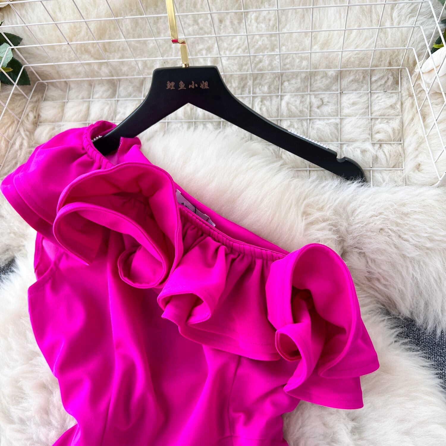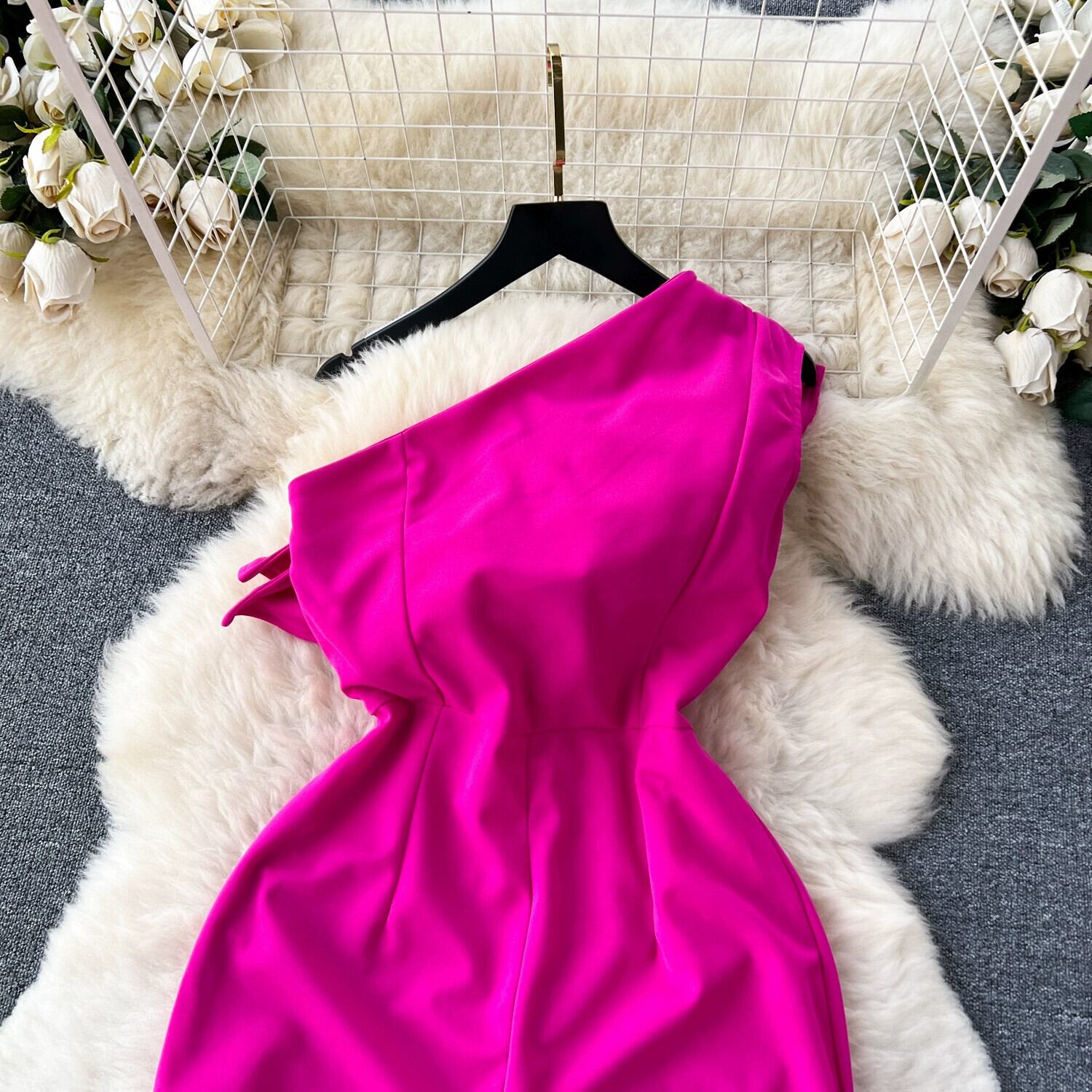 ヨーロッパとアメリカのインスタイルのセクシーなジャンプスーツの女性、ハイウエスト、スリム、カジュアル、ファッショナブル、ワンショルダー、ノースリーブ、フリル、ワイドレッグパンツ ヨーロピアン lyxaj87643929268