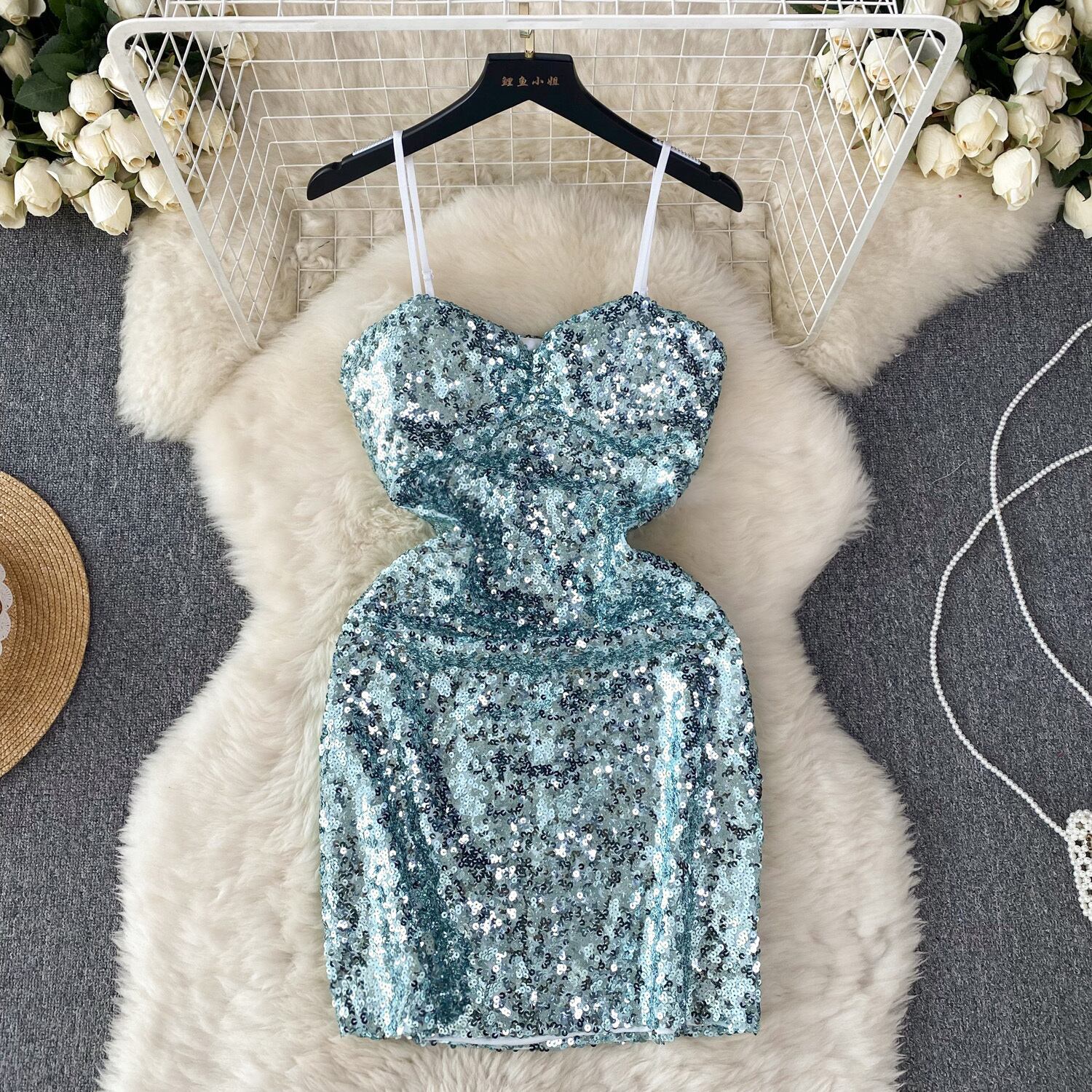 夏のキラキラしたハイエンドのサスペンダードレス女性、ウエストを締めるデザイン、軽くて豪華なニッチ、純粋な欲望のお尻をカバーするスカート サマー 夏物 ピュア lyxaj54353262356
