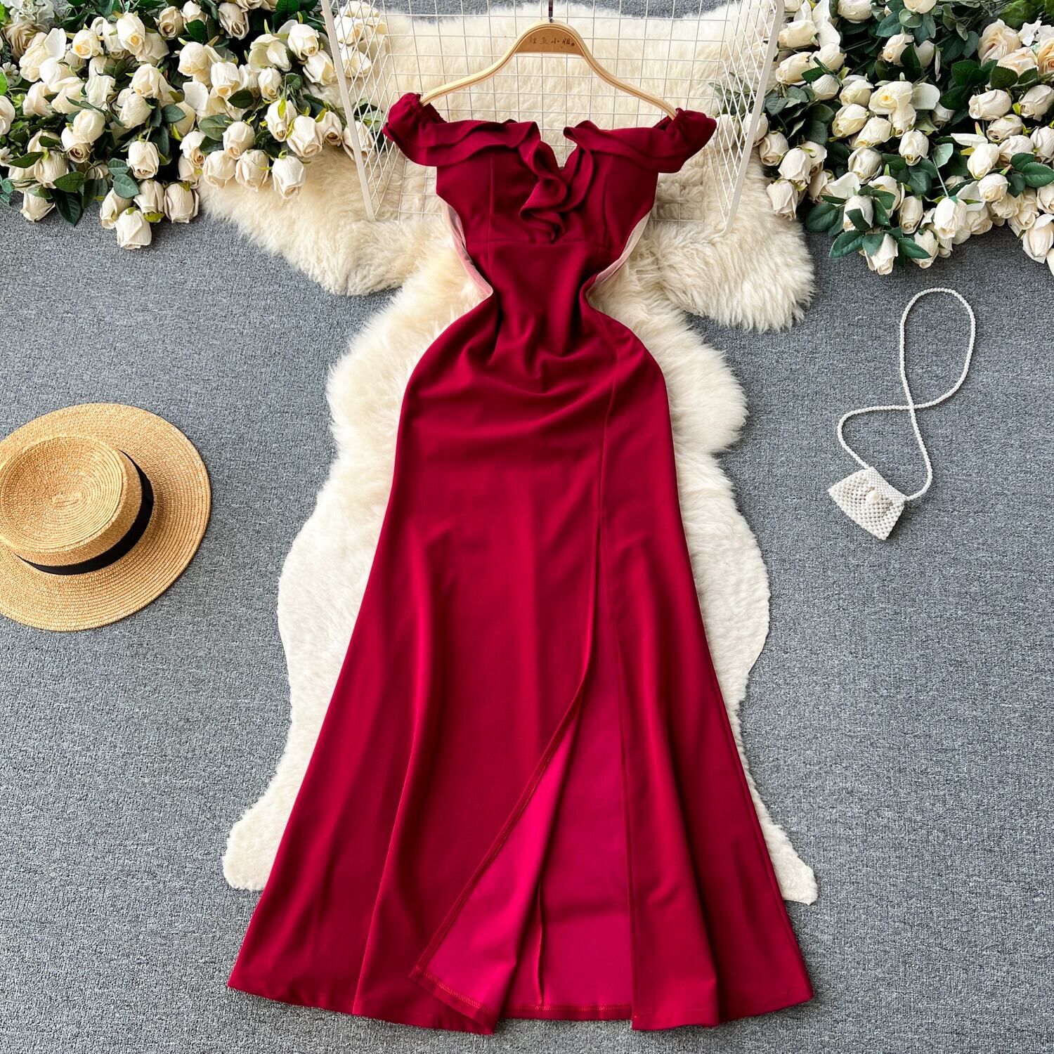 フレンチレトロライトラグジュアリーハイエンドワンショルダーチューブトップドレスレディースウエスト痩身トレンドスリットドレス lyxaj24011784509