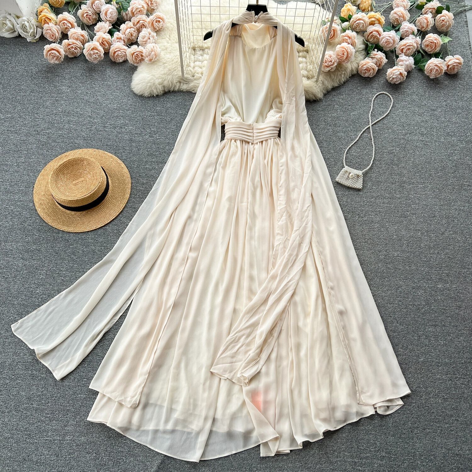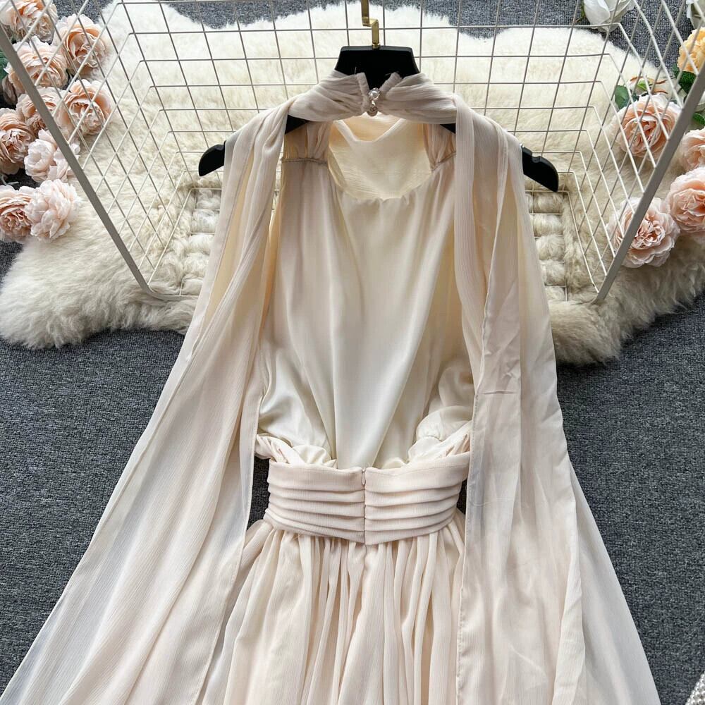 セレブ高級フロアレングスガウン、ロングスカート、レディースウエスト痩身、スーパーフェアリーリボン、ホルターネック、バックレスドレス、トレンディ lyxaj11805821088