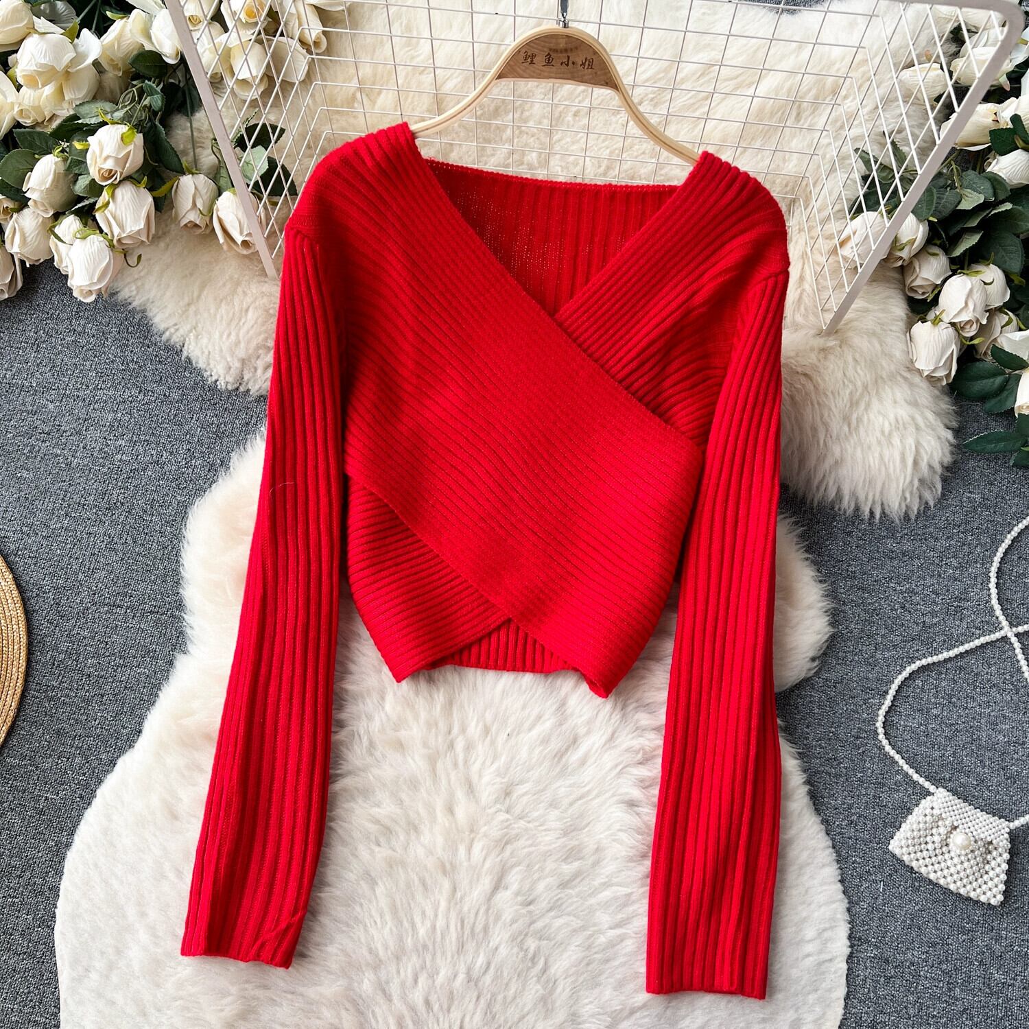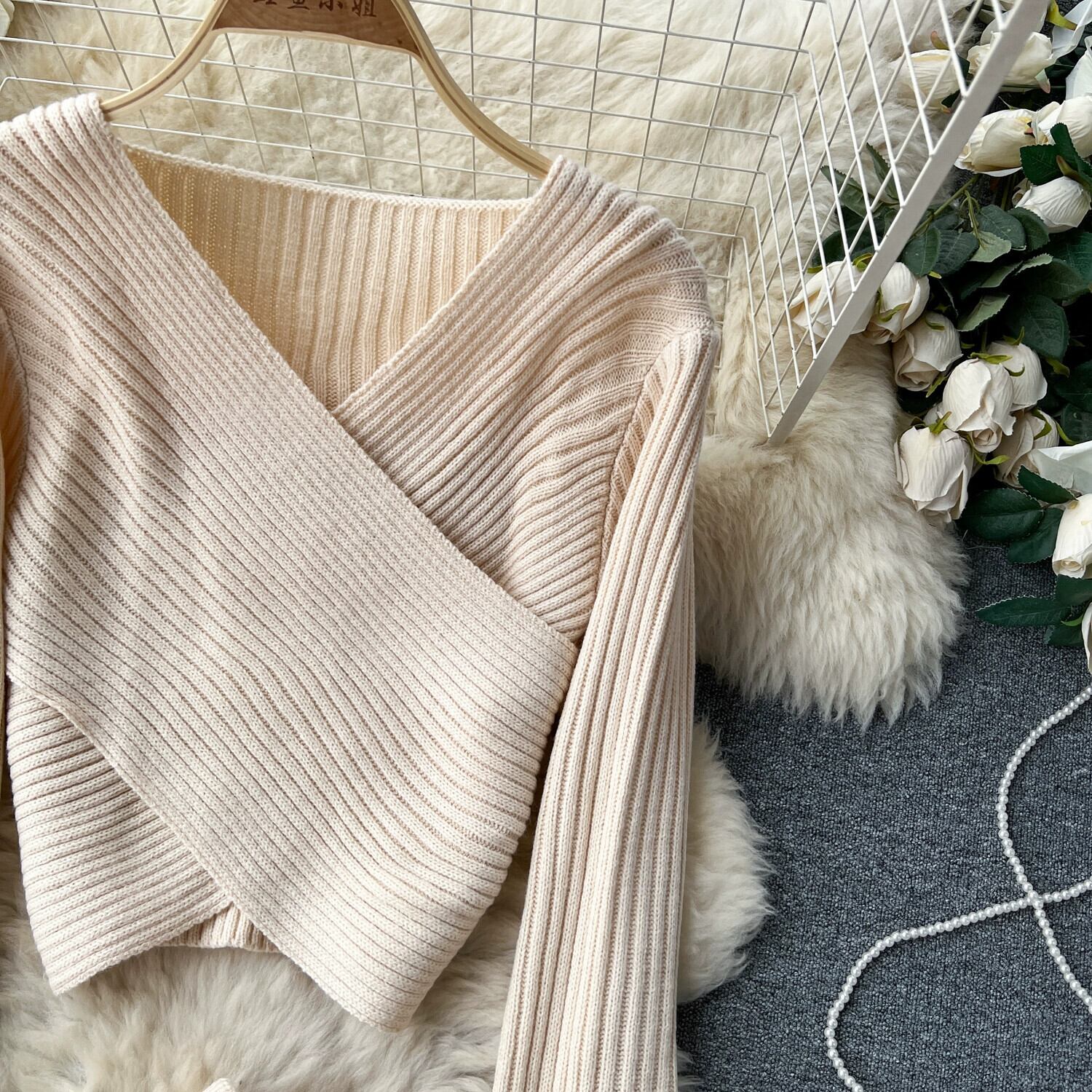 秋冬の新フレンチレトロクロスデザイン長袖ニットトップタイトフィットと痩身ヒップスカートスーツ ロング オータム 秋物 ウィンター 冬物 lyxaj86326802384