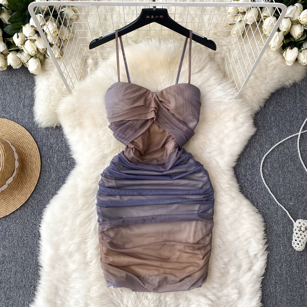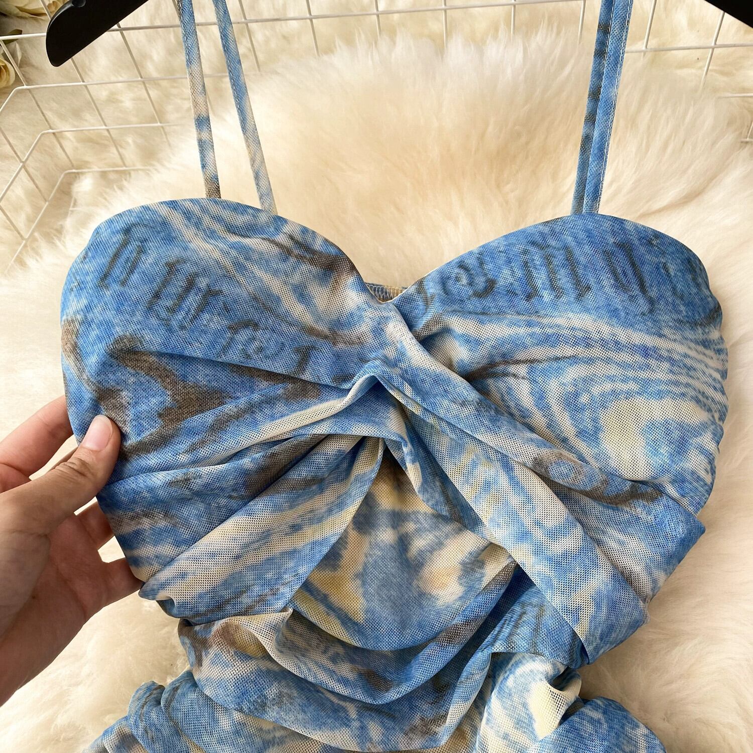 セクシーな純粋な欲望ネクタイ汚れたプリントサスペンダードレス女性の夏のプリーツウエスト痩身気質ヒップハグショートスカート サマー 夏物 ピュア lyxaj9991403025
