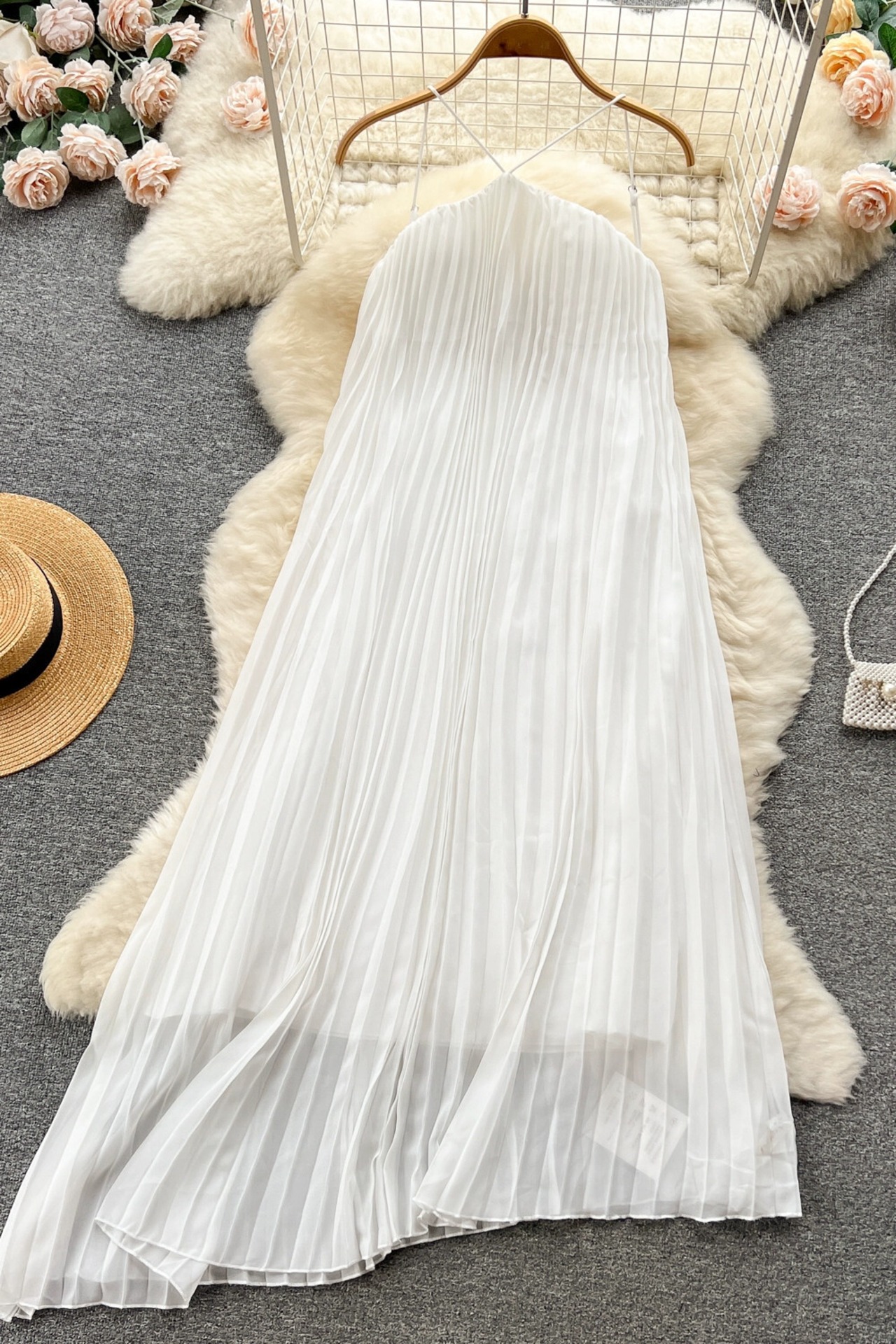 夏のハイエンドのホルターネックサスペンダードレスの女性、ホリデースタイルのシーサイドチューブトップ、不規則なロングルーズフェアリースカート サマー 夏物 lyxaj55280349810