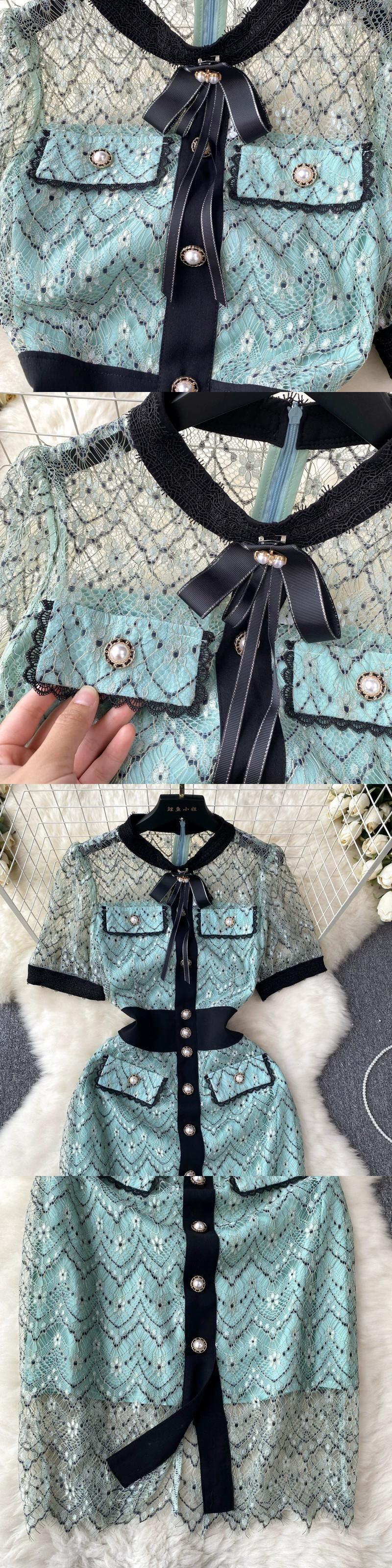 -エンドライトラグジュアリースタイルレーススプライシングデザインニッチフレンチウエストスリミングレトロな香りのドレス lyxaj51864017268