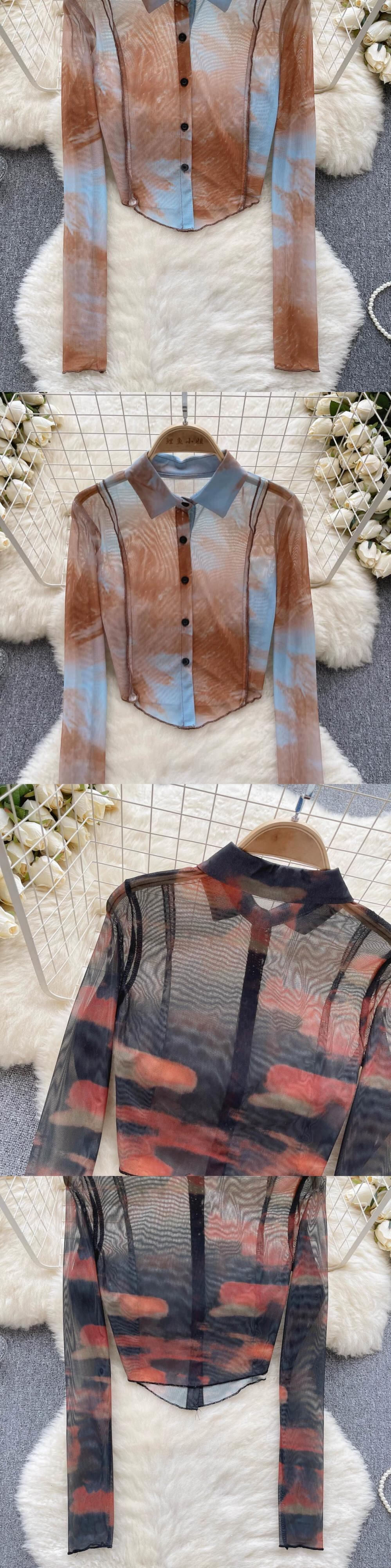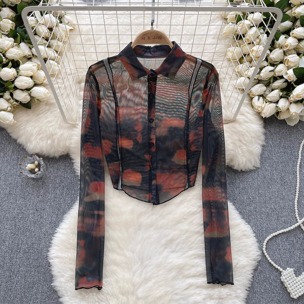 ヨーロッパとアメリカのインスタイルのセクシーなネクタイ長袖カーディガンメッシュトップ女性夏薄いシースルースリムフィット tシャツトレンディ ロング サマー 夏物 ヨーロピアン lyxaj8750733772