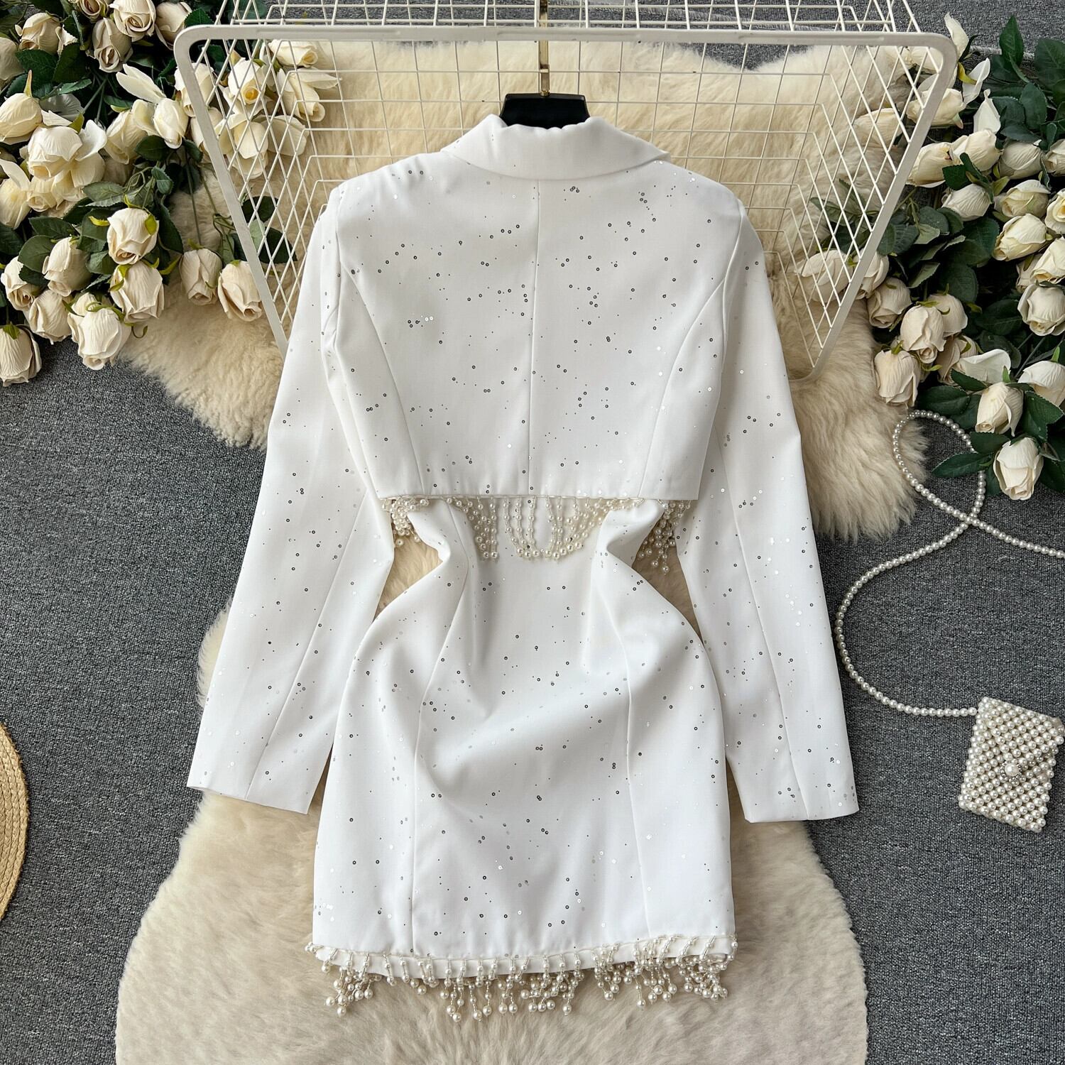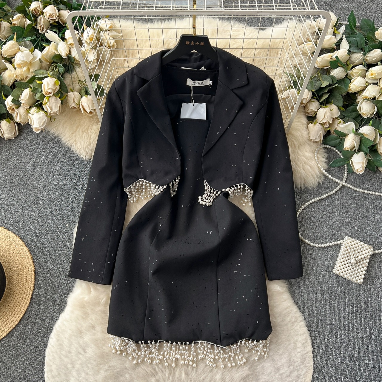 フランスの高級チェーンテルスプライシングノースリーブスクエアカラードレス2点セットレディースカーディガンショートブレザー スクウェア lyxaj54045850559