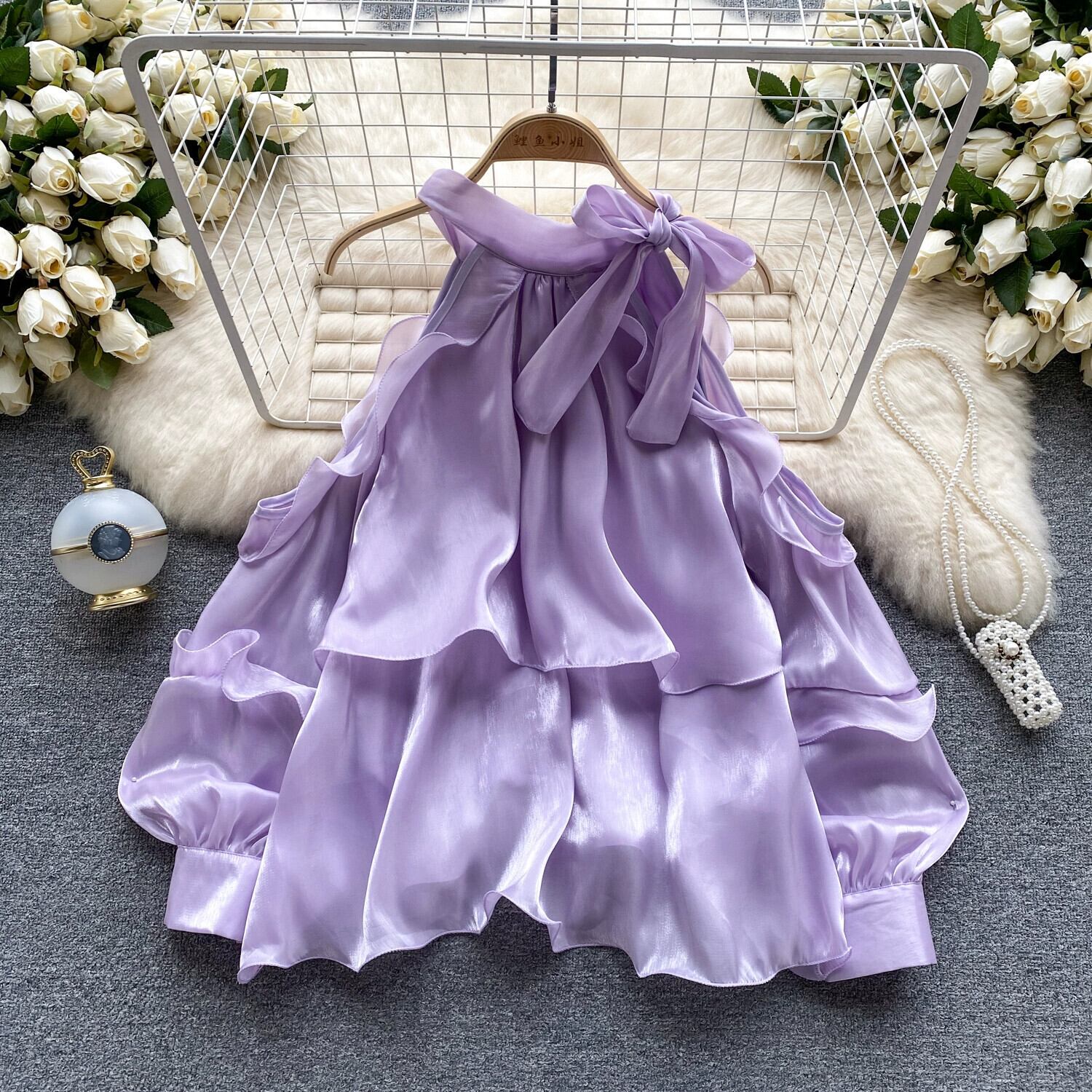フリルのランタンスリーブとニッチシックなスーパーフェアリートップを備えた夏のフランスの高級オフショルダーシフォントップ女性 サマー 夏物 lyxaj14555666804