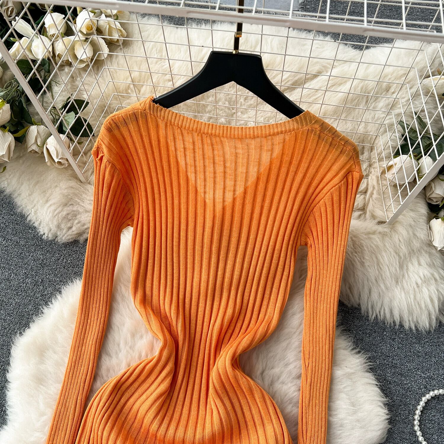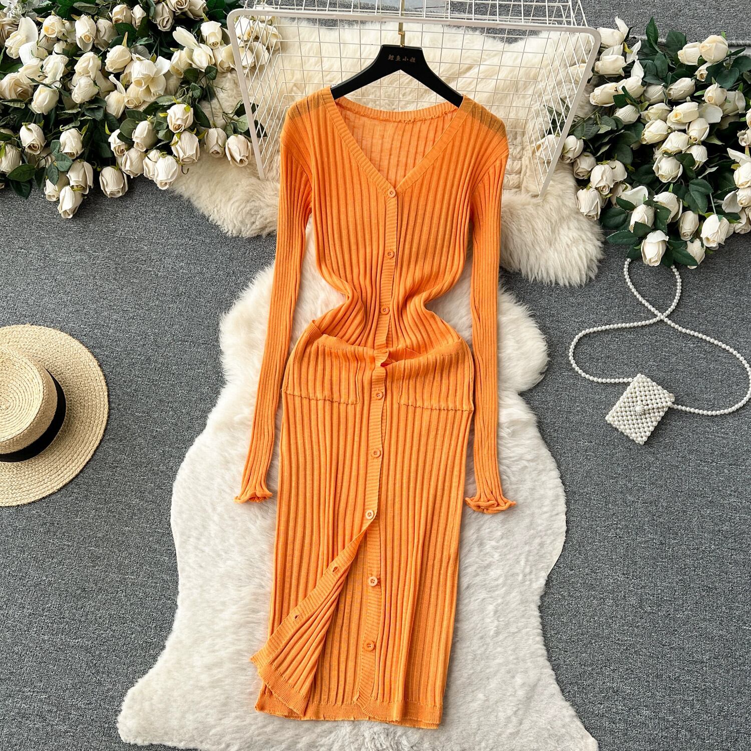 ミニマリストスタイルのソリッドカラーのニットドレス女性の秋と冬の長袖シングルブレストデザインニッチシックなタイトロングスカート オータム 秋物 ウィンター 冬物 lyxaj43589625925