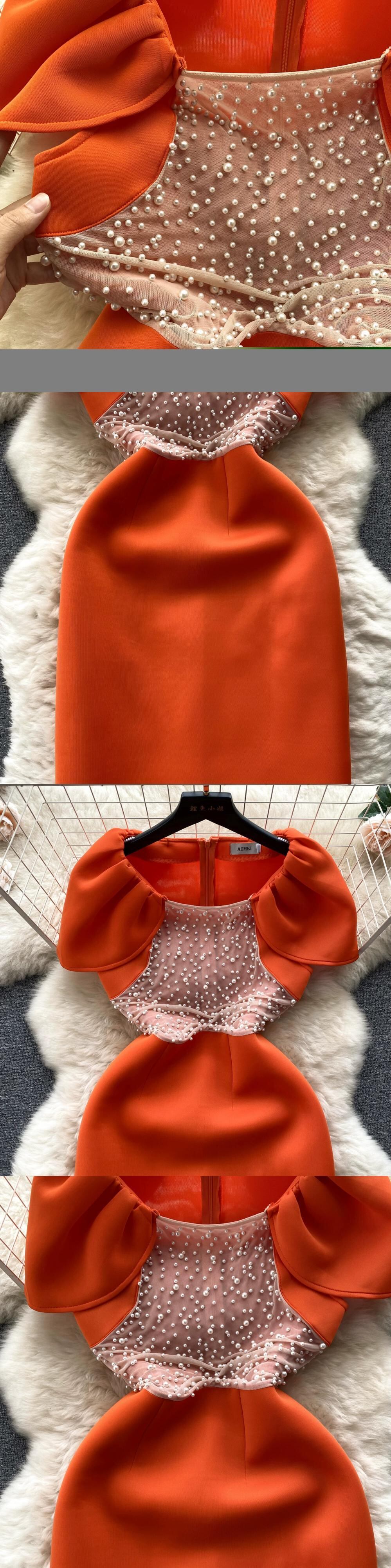 ヨーロッパとアメリカのファッショナブルな宴会パーティードレスの女性の夏のハイエンド重工業メッシュビーズステッチ蓮の葉の袖のドレス サマー 夏物 ヨーロピアン lyxaj52011932023